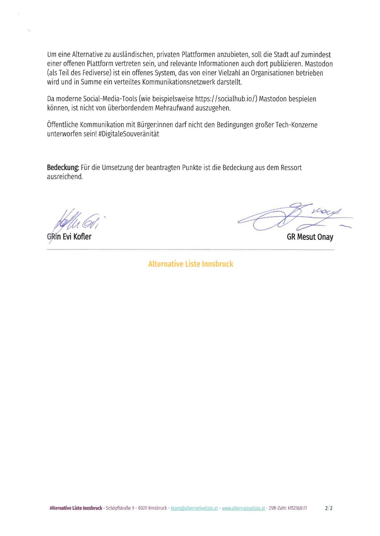 Altemative Liste Innsbruck - Schöpfstraße 9 - 6020 Innsbruck - team@alternativeliste.at - www.alternativeliste.at - ZVR-Zahl: 1352368177
