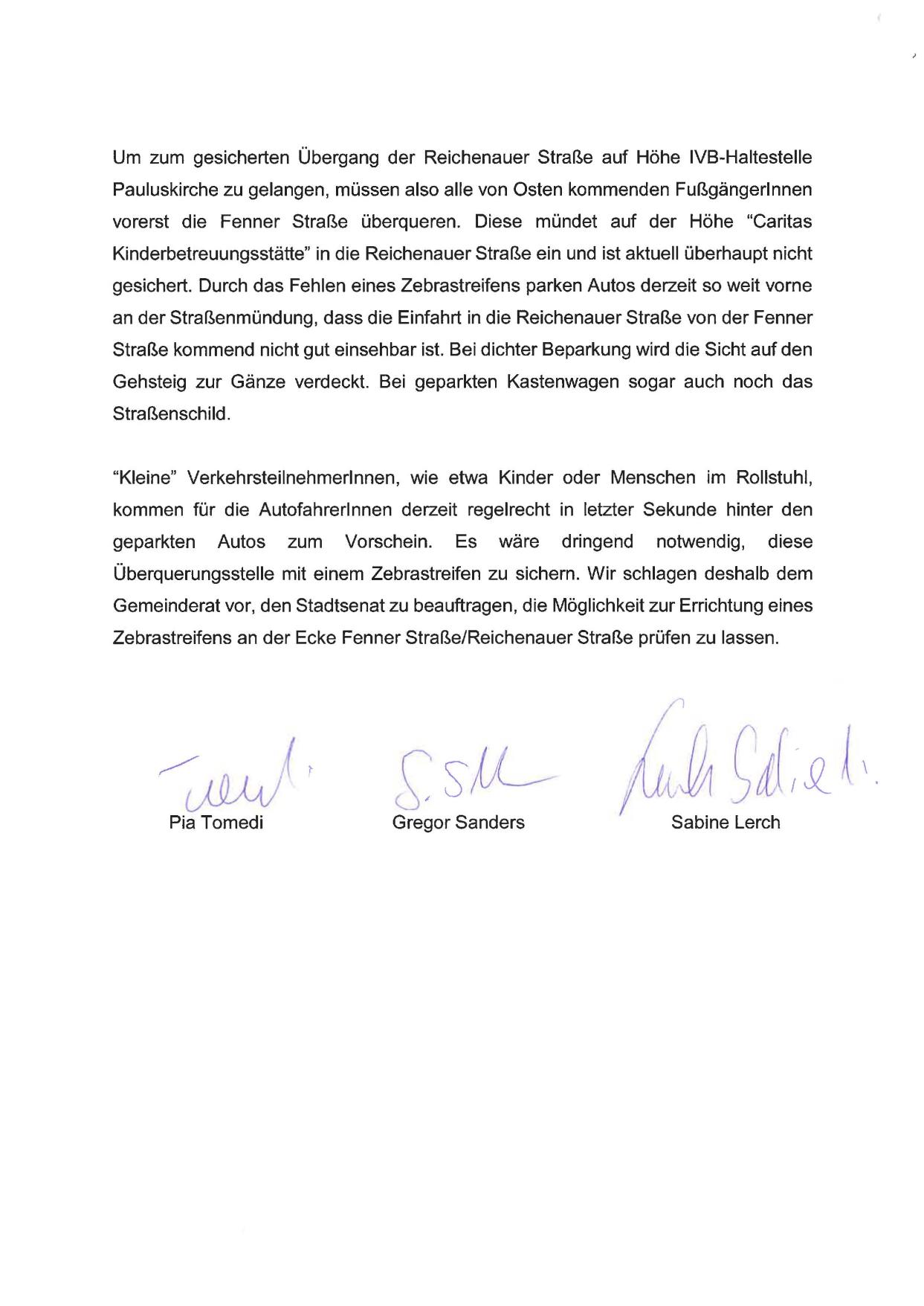 Um zum gesicherten Übergang der Reichenauer Straße auf Höhe IVB-Haltestelle