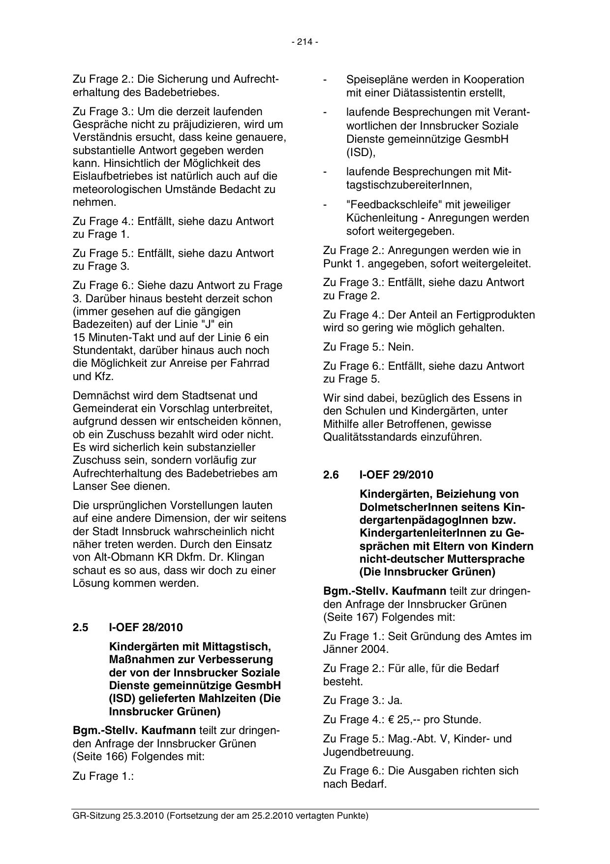 GR-Sitzung 25.3.2010 (Fortsetzung der am 25.2.2010 vertagten Punkte)