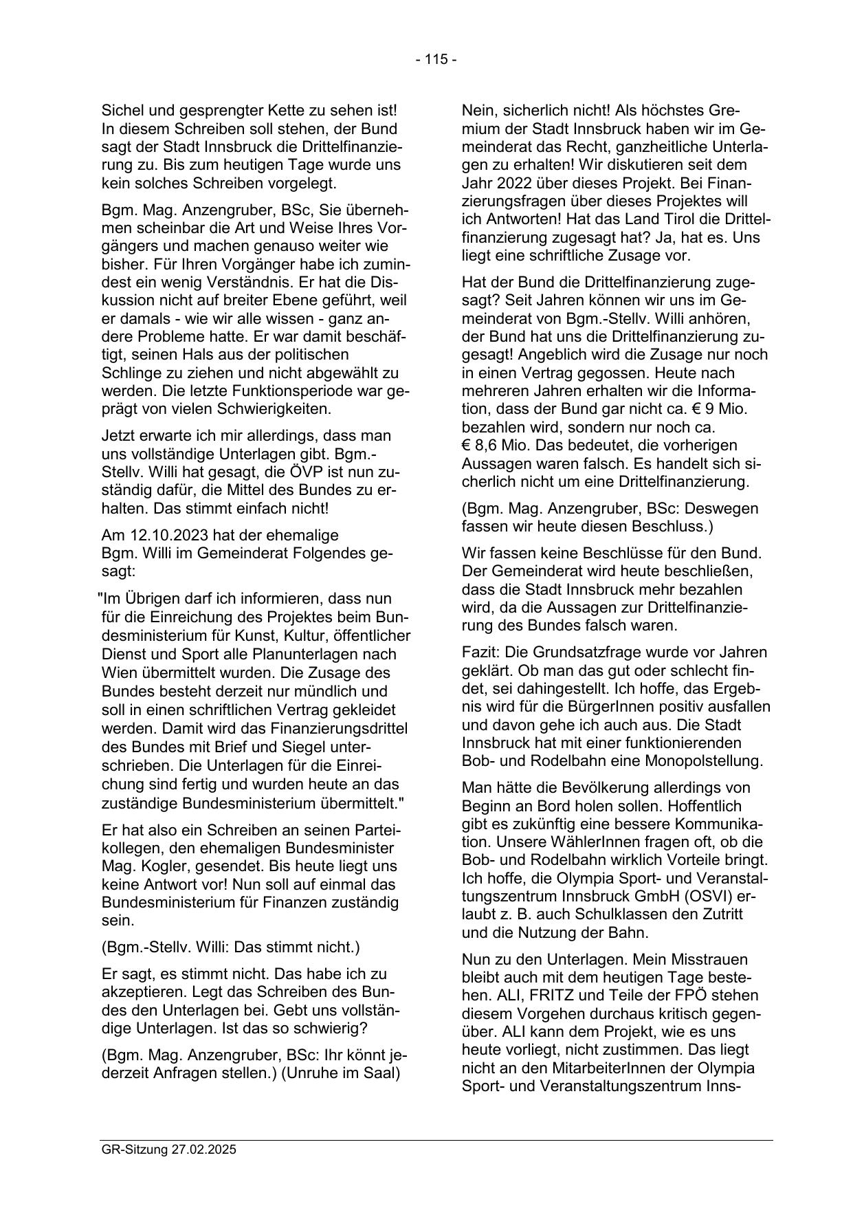(Bgm. Mag. Anzengruber, BSc: Ihr könnt jederzeit Anfragen stellen.) (Unruhe im Saal)