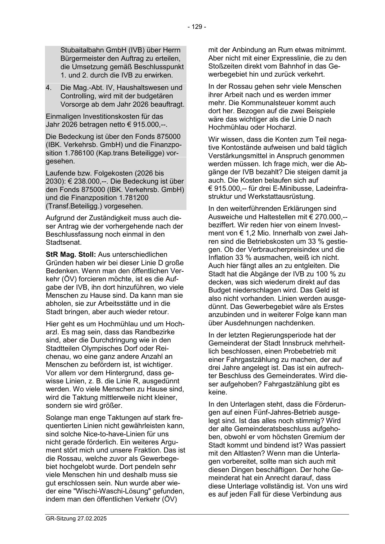 werden müssen. Ich frage mich, wer die Abgänge der IVB bezahlt? Die steigen damit ja