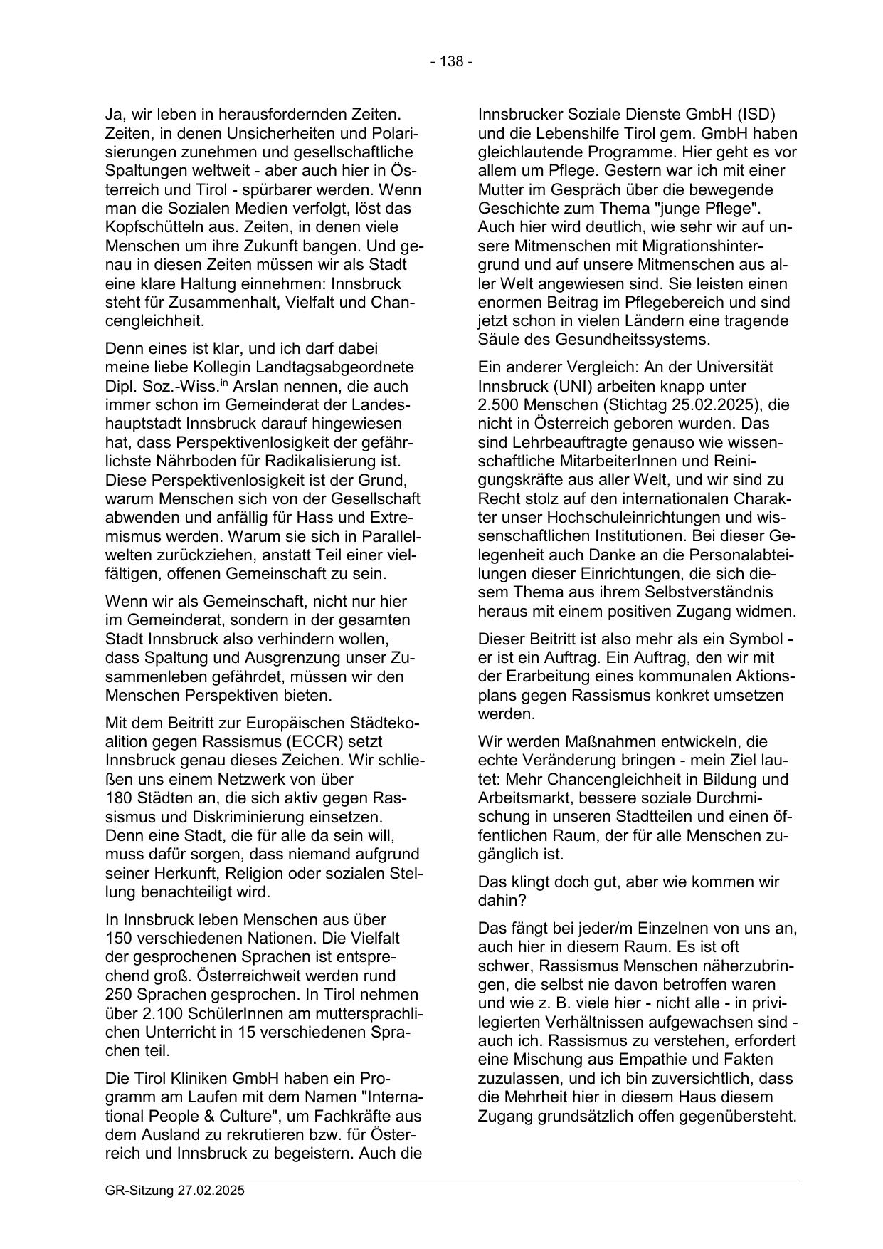 immer schon im Gemeinderat der Landeshauptstadt Innsbruck darauf hingewiesen