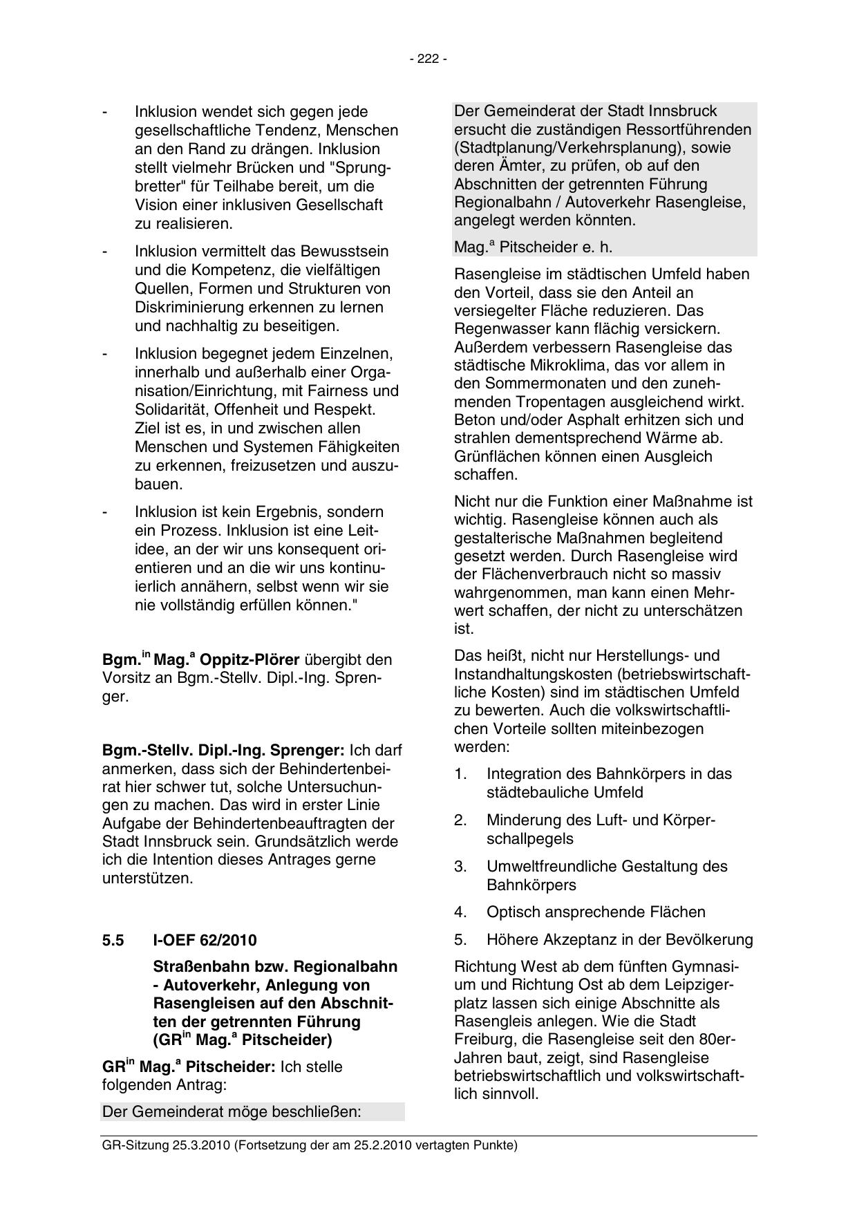 GR-Sitzung 25.3.2010 (Fortsetzung der am 25.2.2010 vertagten Punkte)