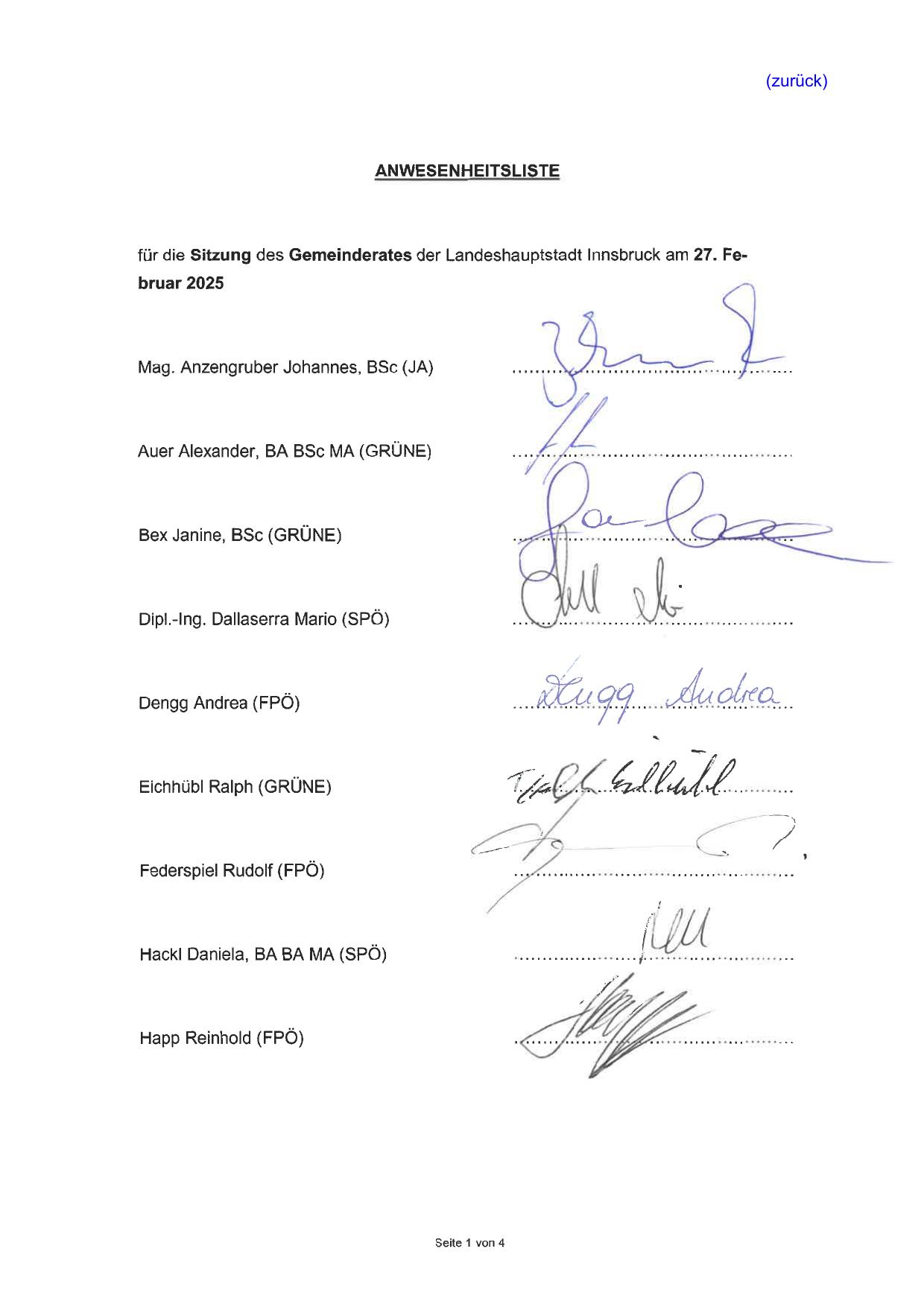 für die Sitzung des Gemeinderates der Landeshauptstadt Innsbruck am 27. Februar 2025
