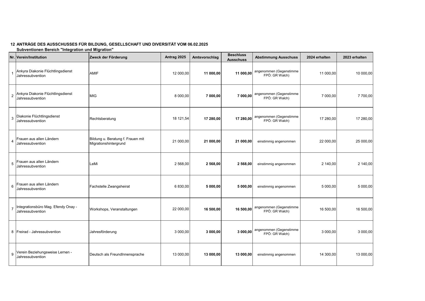12 ANTRÄGE DES AUSSCHUSSES FÜR BILDUNG, GESELLSCHAFT UND DIVERSITÄT VOM 06.02.2025