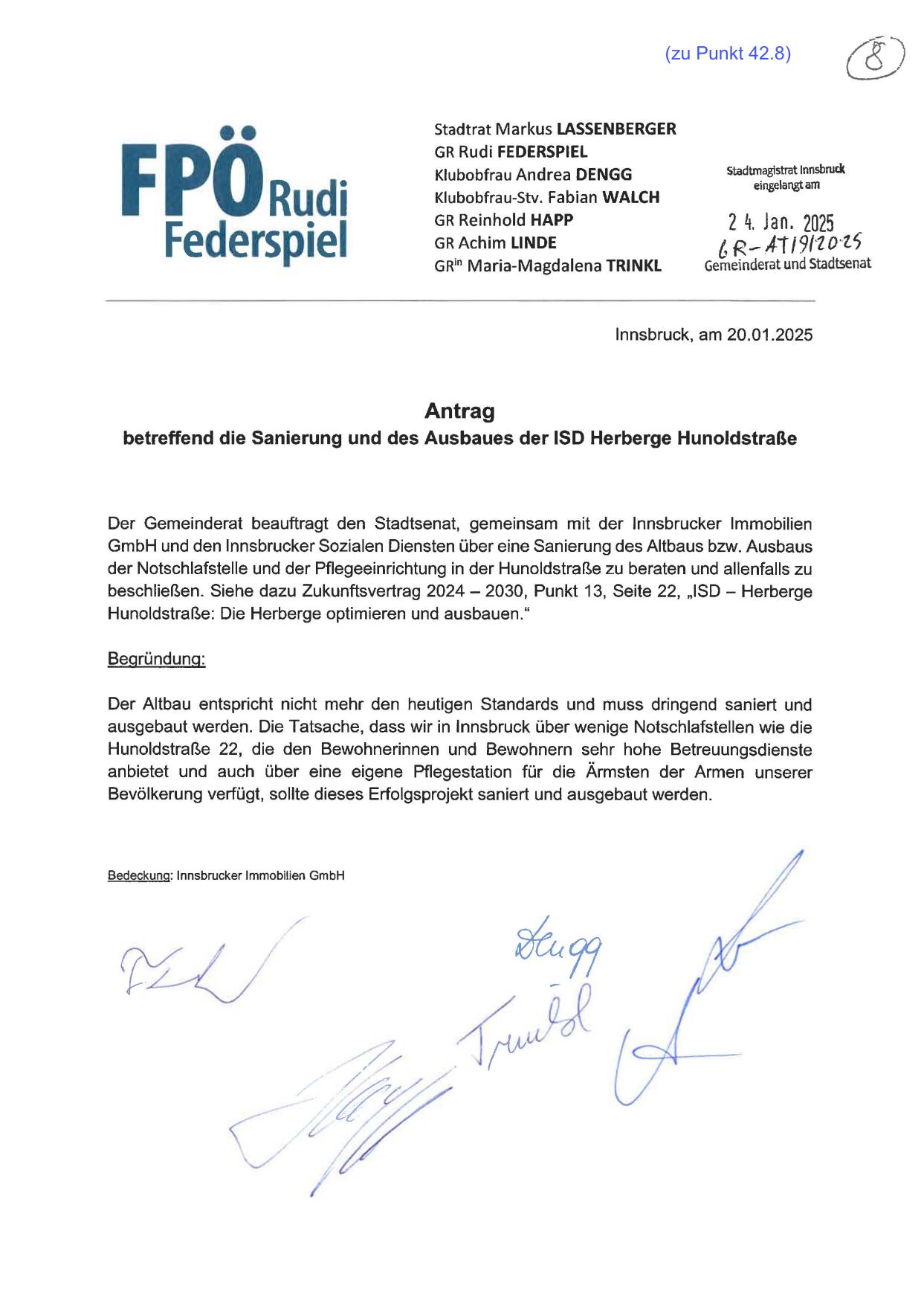 beschließen. Siehe dazu Zukunftsvertrag 2024 — 2030, Punkt 13, Seite 22, „ISD — Herberge