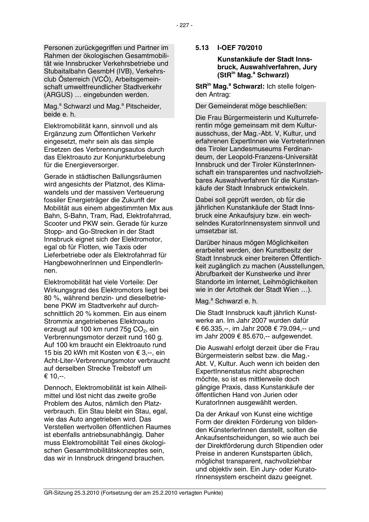 GR-Sitzung 25.3.2010 (Fortsetzung der am 25.2.2010 vertagten Punkte)