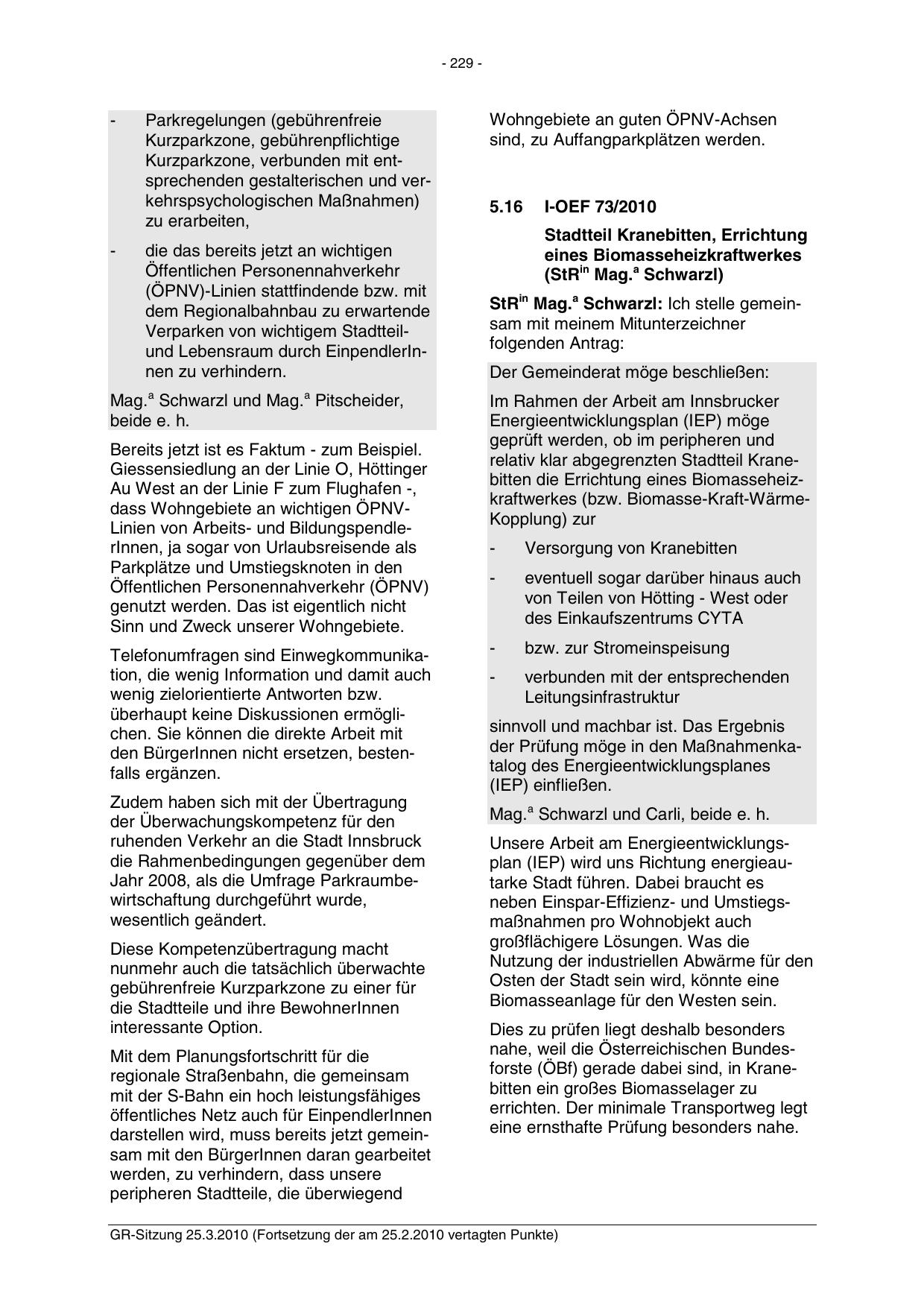 GR-Sitzung 25.3.2010 (Fortsetzung der am 25.2.2010 vertagten Punkte)