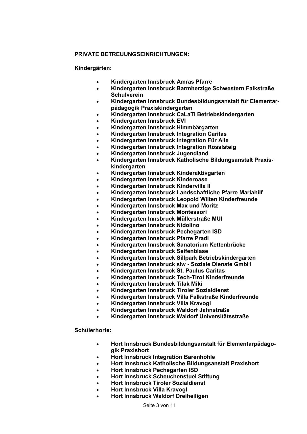 PRIVATE BETREUUNGSEINRICHTUNGEN: