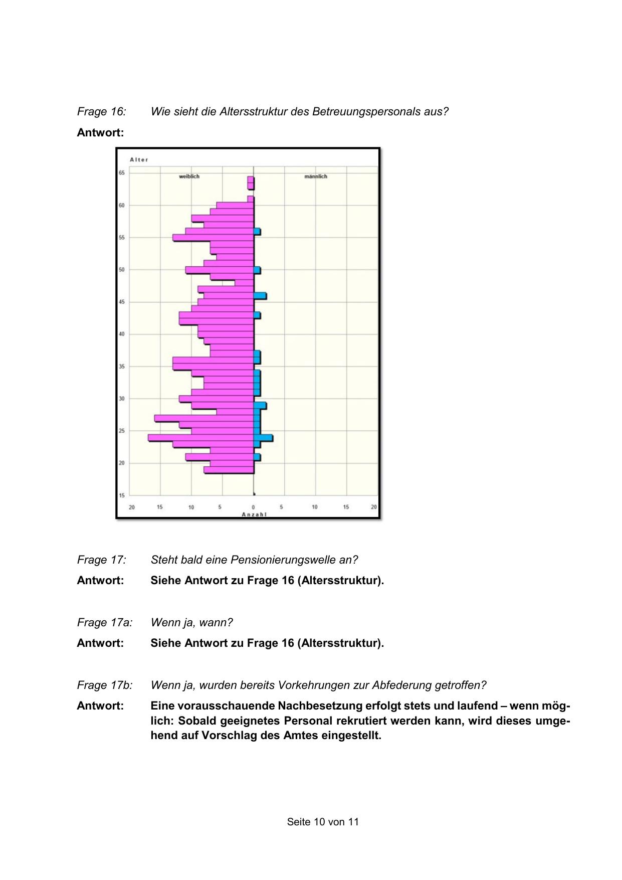 Siehe Antwort zu Frage 16 (Altersstruktur).