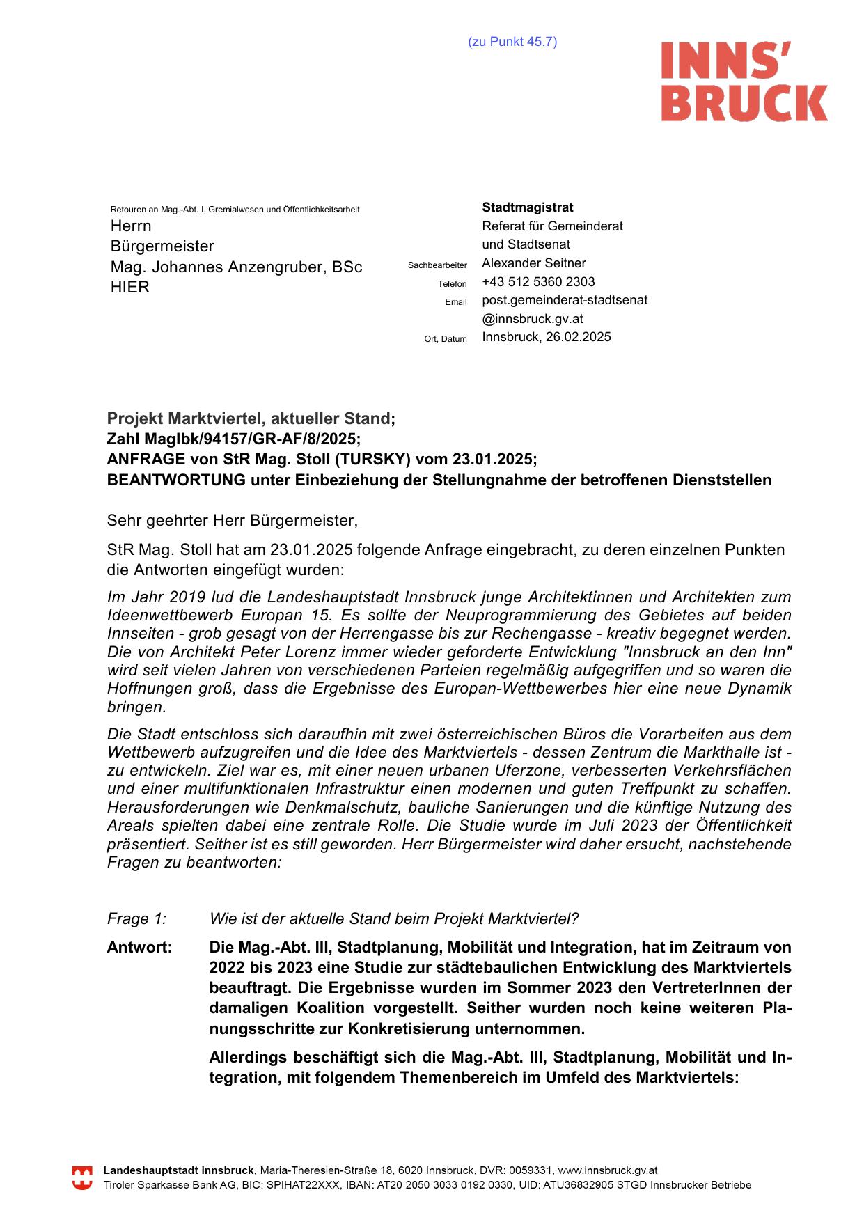 StR Mag. Stoll hat am 23.01.2025 folgende Anfrage eingebracht, zu deren einzelnen Punkten