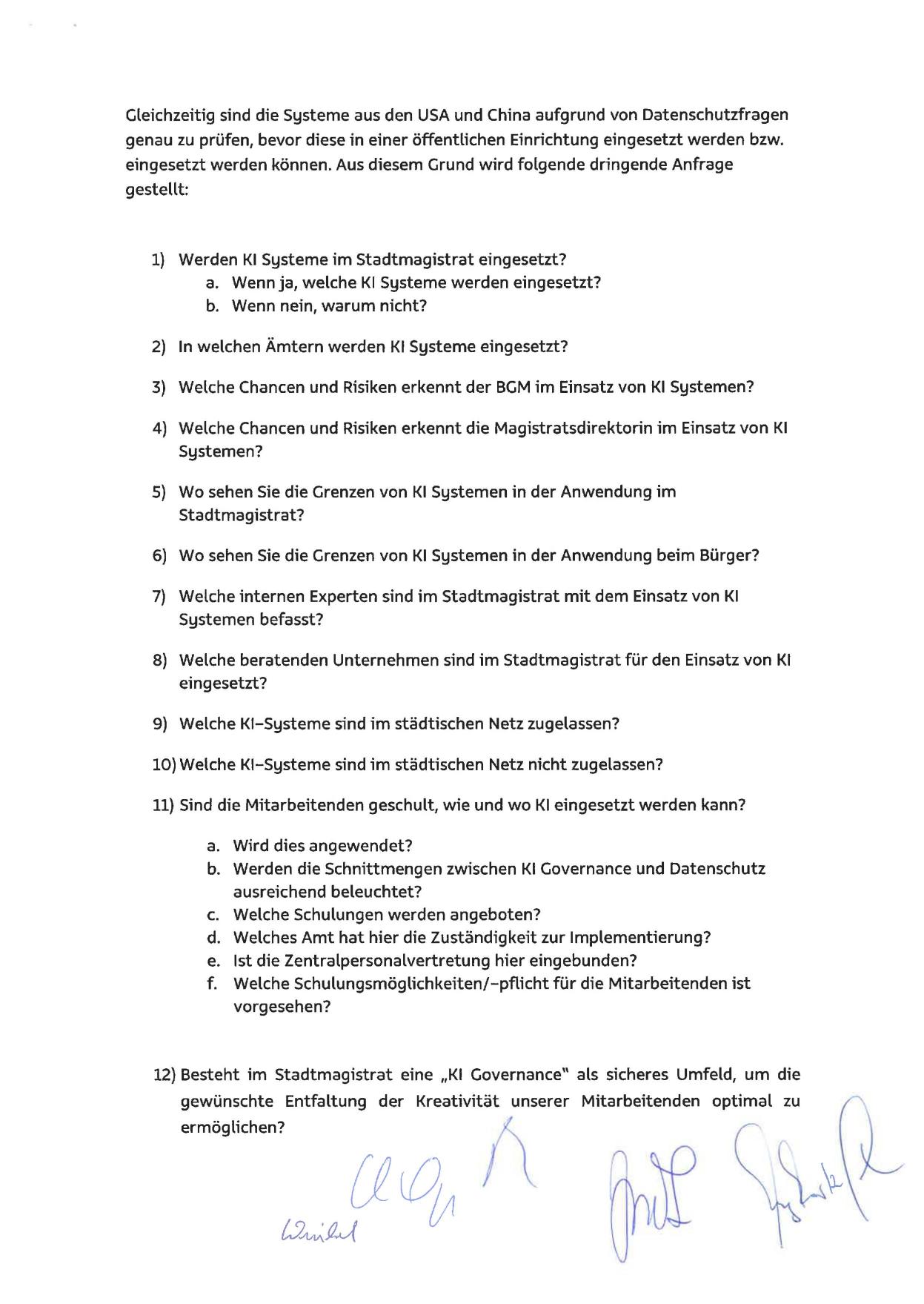 12) Besteht im Stadtmagistrat eine „KI Governance“ als sicheres Umfeld, um die