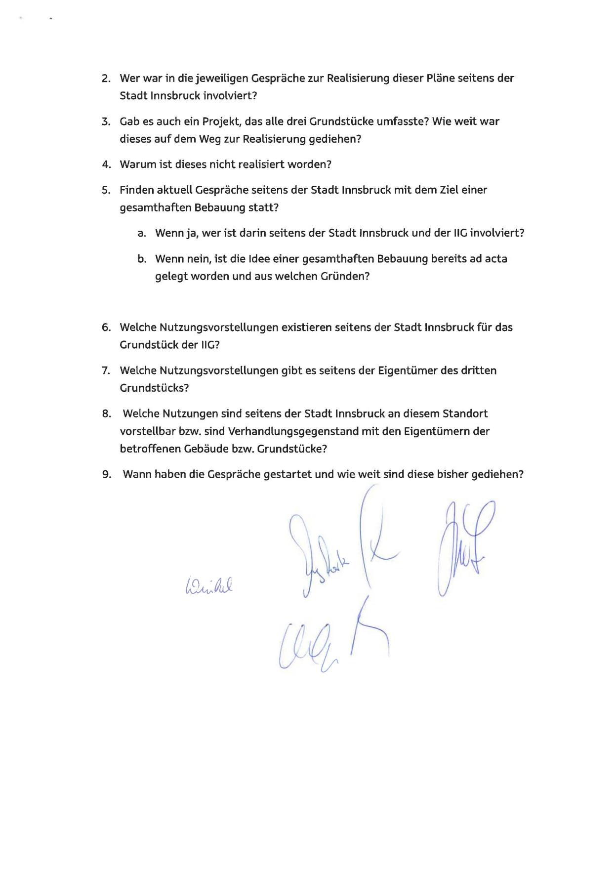 Wenn ja, wer ist darin seitens der Stadt Innsbruck und der IIG involviert?