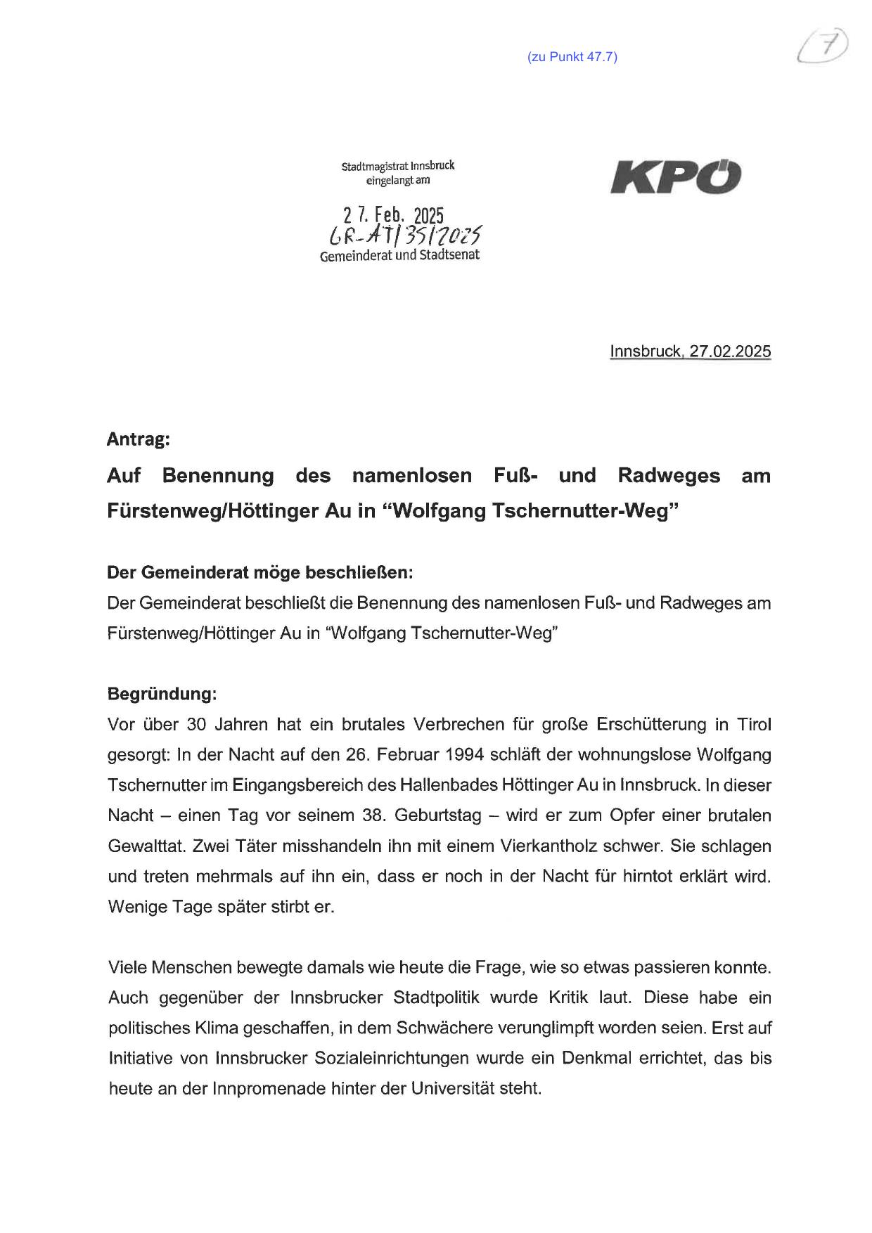 Fürstenweg/Höttinger Au in “Wolfgang Tschernutter-Weg”