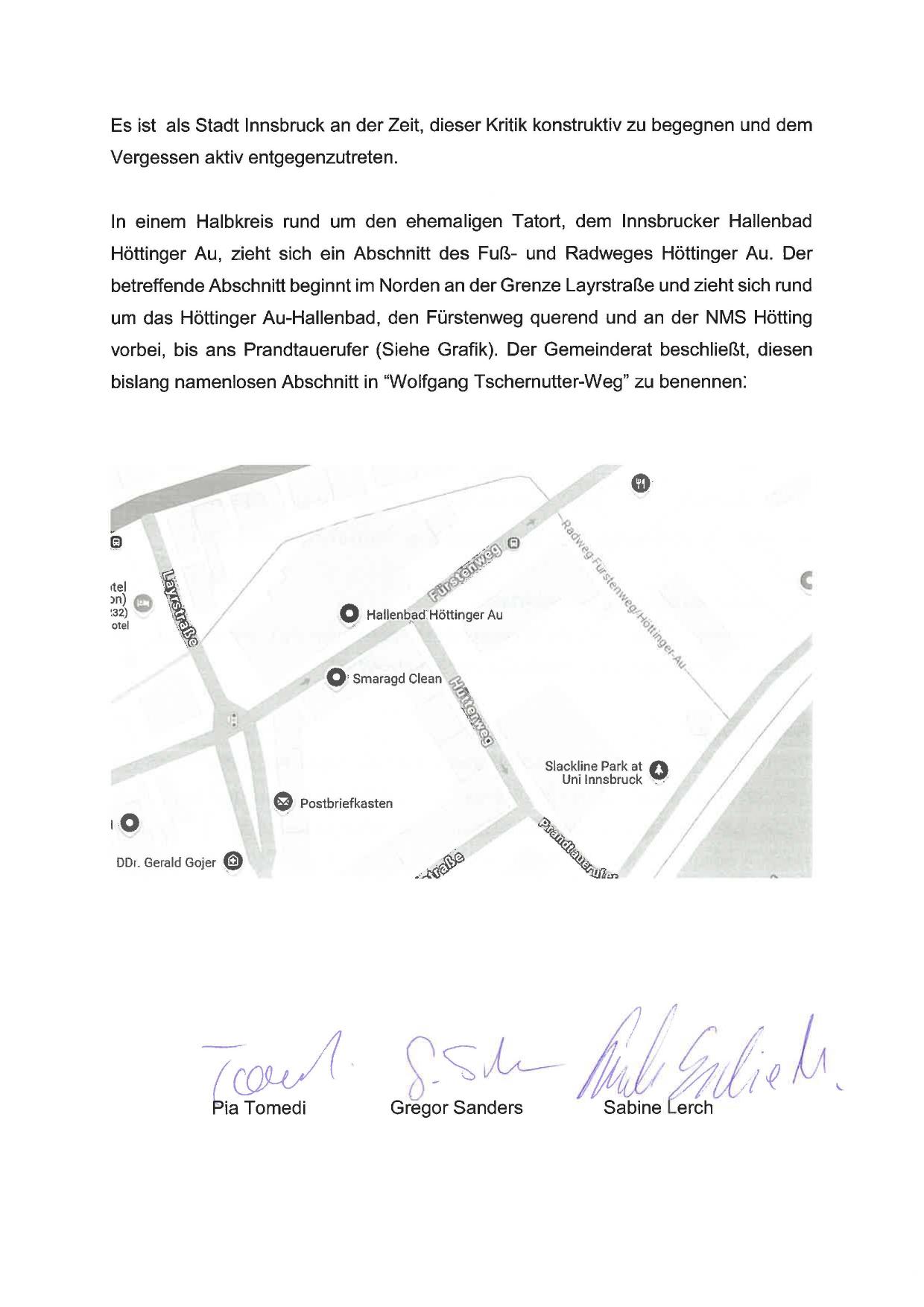 bislang namenlosen Abschnitt in ‘Wolfgang Tschernutter-Weg” zu benennen: