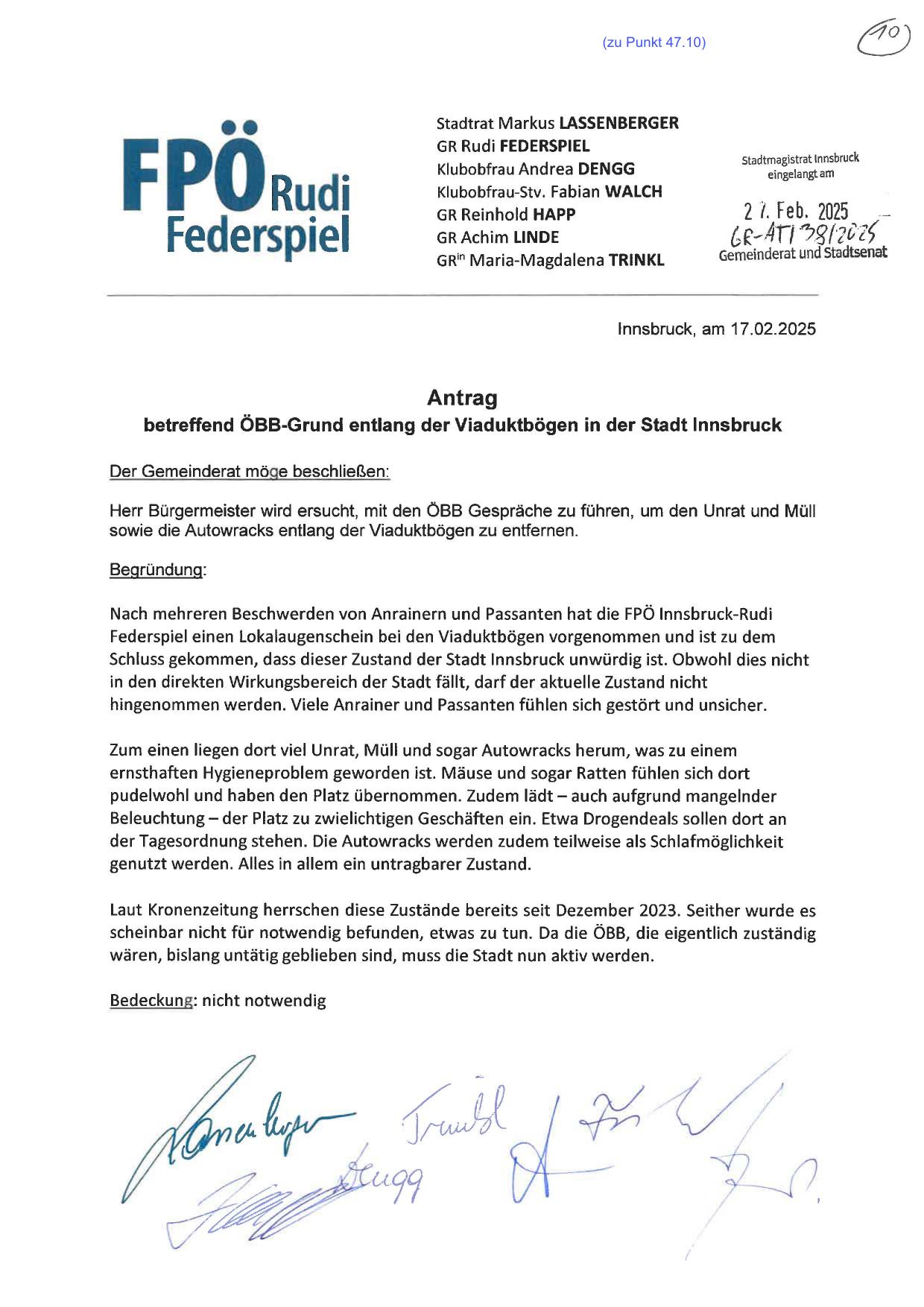 betreffend ÖBB-Grund entlang der Viaduktbögen in der Stadt Innsbruck