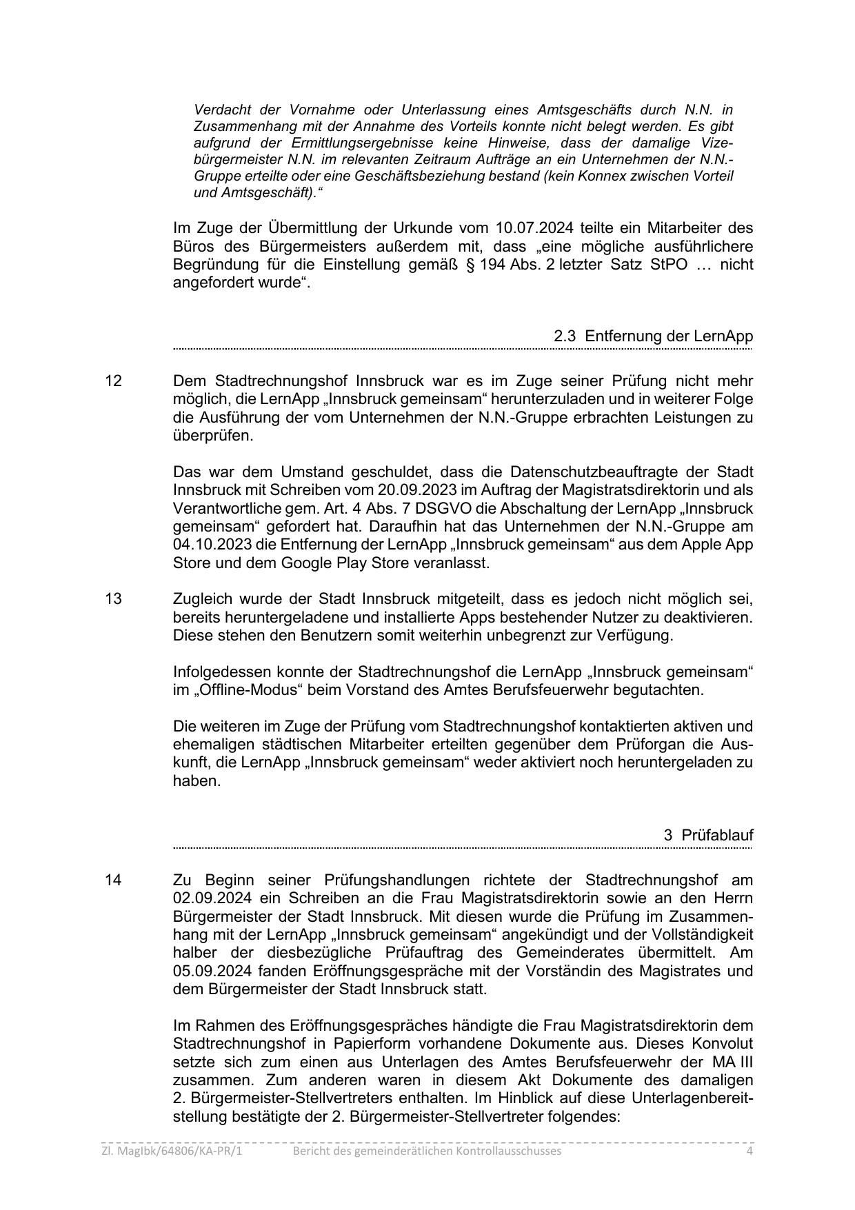 Bürgermeister der Stadt Innsbruck. Mit diesen wurde die Prüfung im Zusammenhang mit der LernApp „Innsbruck gemeinsam“ angekündigt und der Vollständigkeit