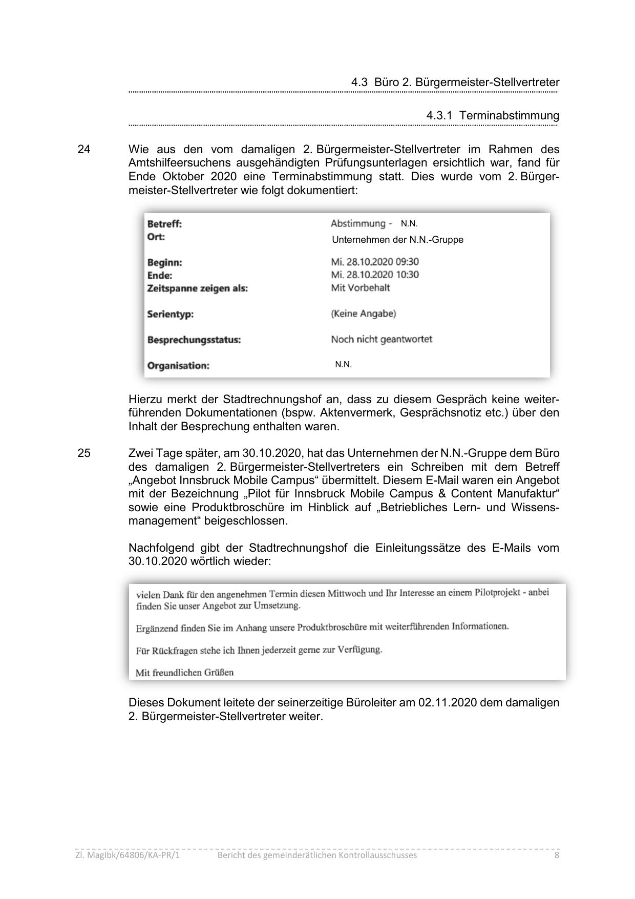 Nachfolgend gibt der Stadtrechnungshof die Einleitungssätze des E-Mails vom
