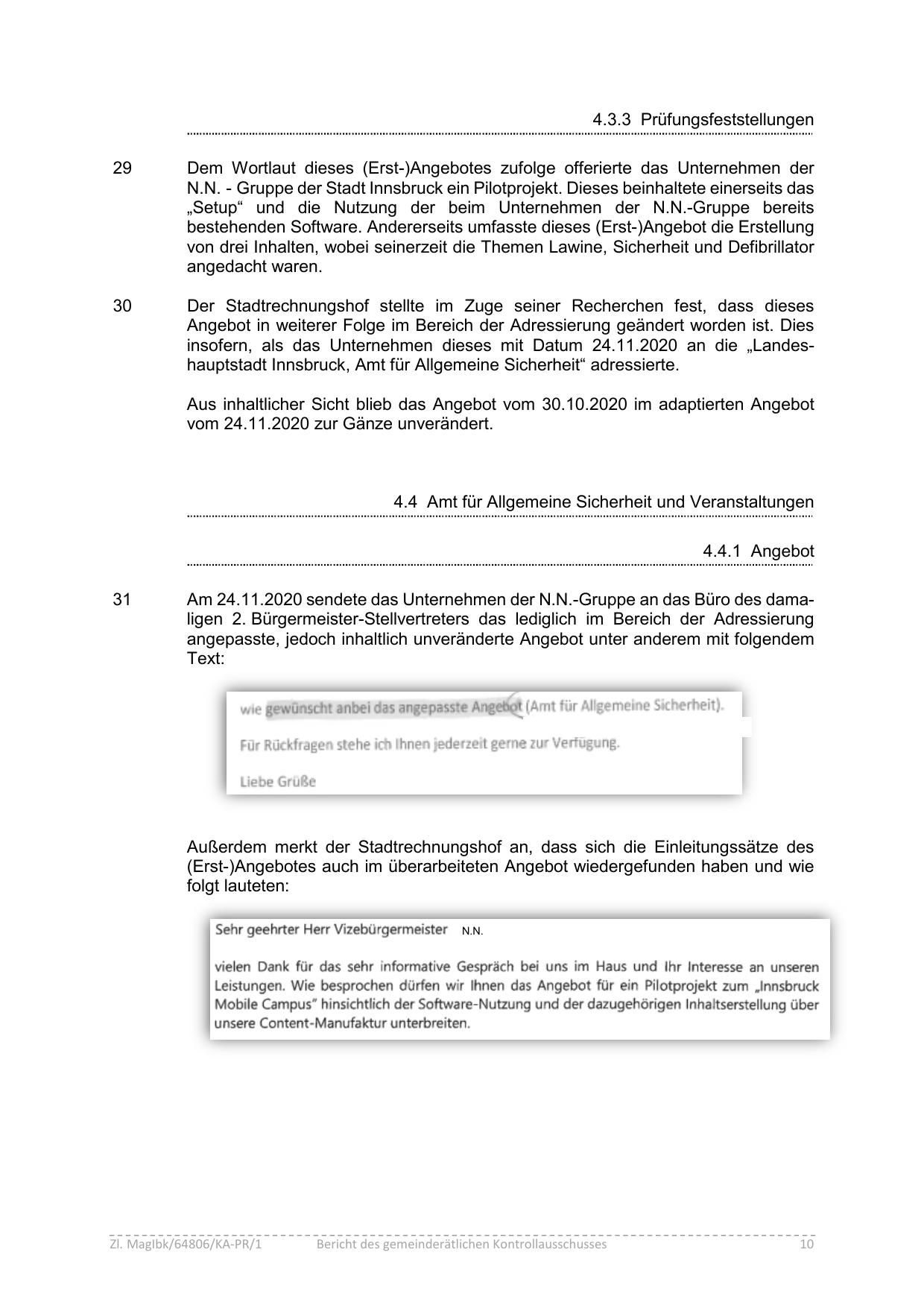Außerdem merkt der Stadtrechnungshof an, dass sich die Einleitungssätze des