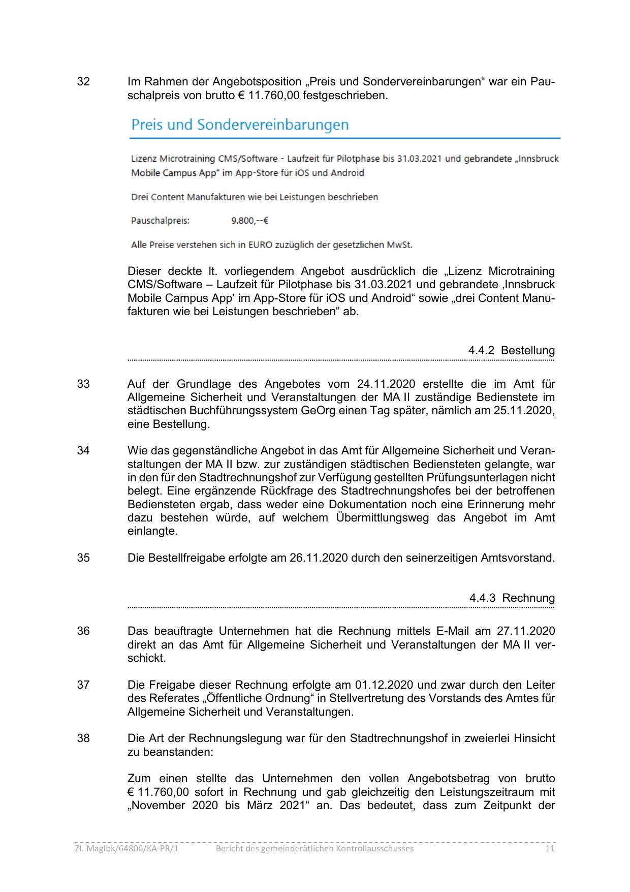belegt. Eine ergänzende Rückfrage des Stadtrechnungshofes bei der betroffenen