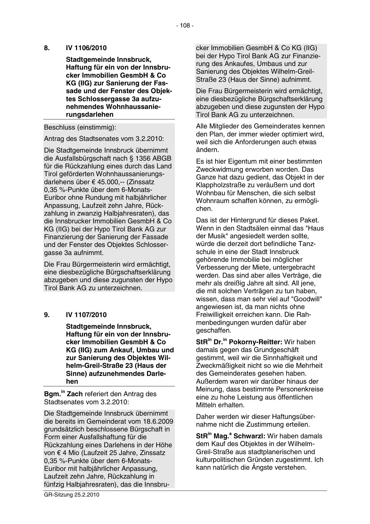 fünfzig Halbjahresraten), das die InnsbruGR-Sitzung 25.2.2010