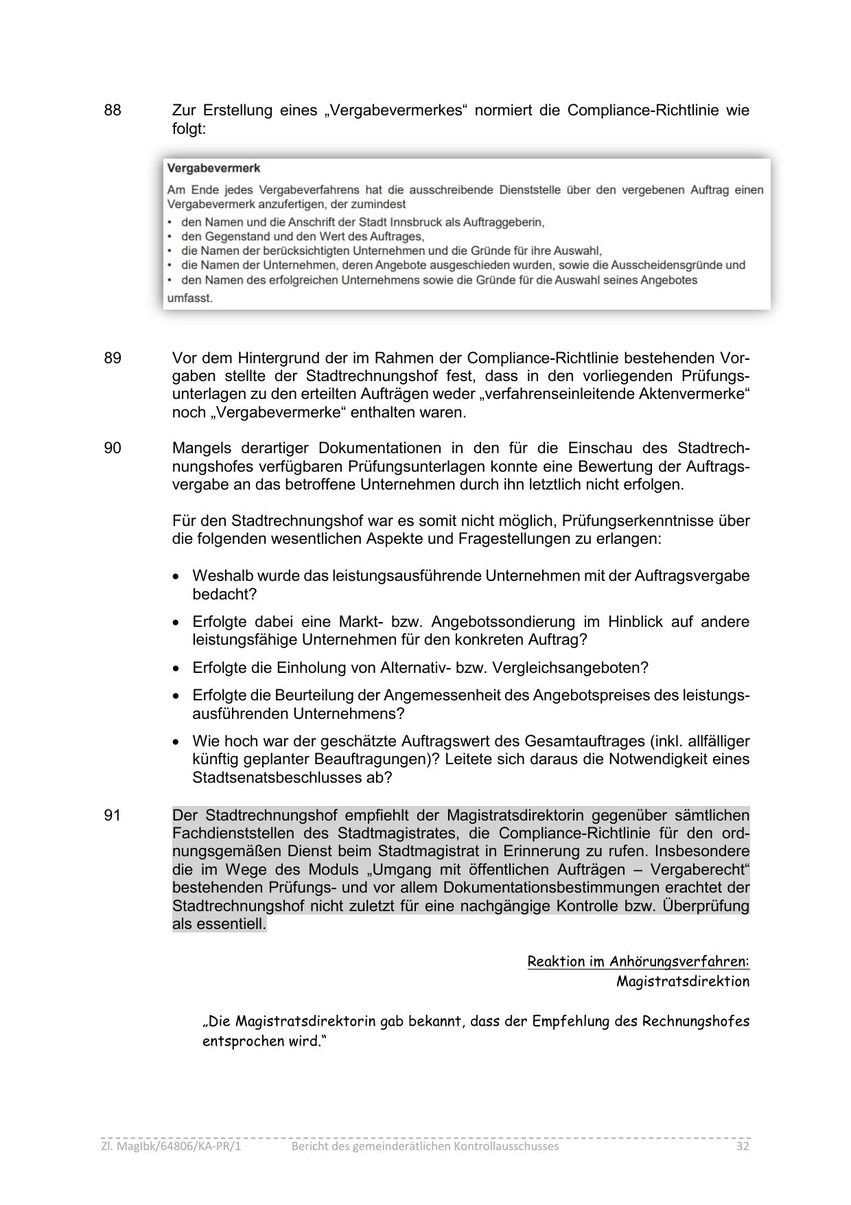 „Die Magistratsdirektorin gab bekannt, dass der Empfehlung des Rechnungshofes