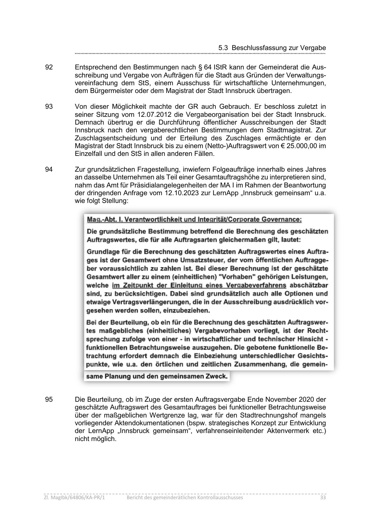 der LernApp „Innsbruck gemeinsam“, verfahrenseinleitender Aktenvermerk etc.)