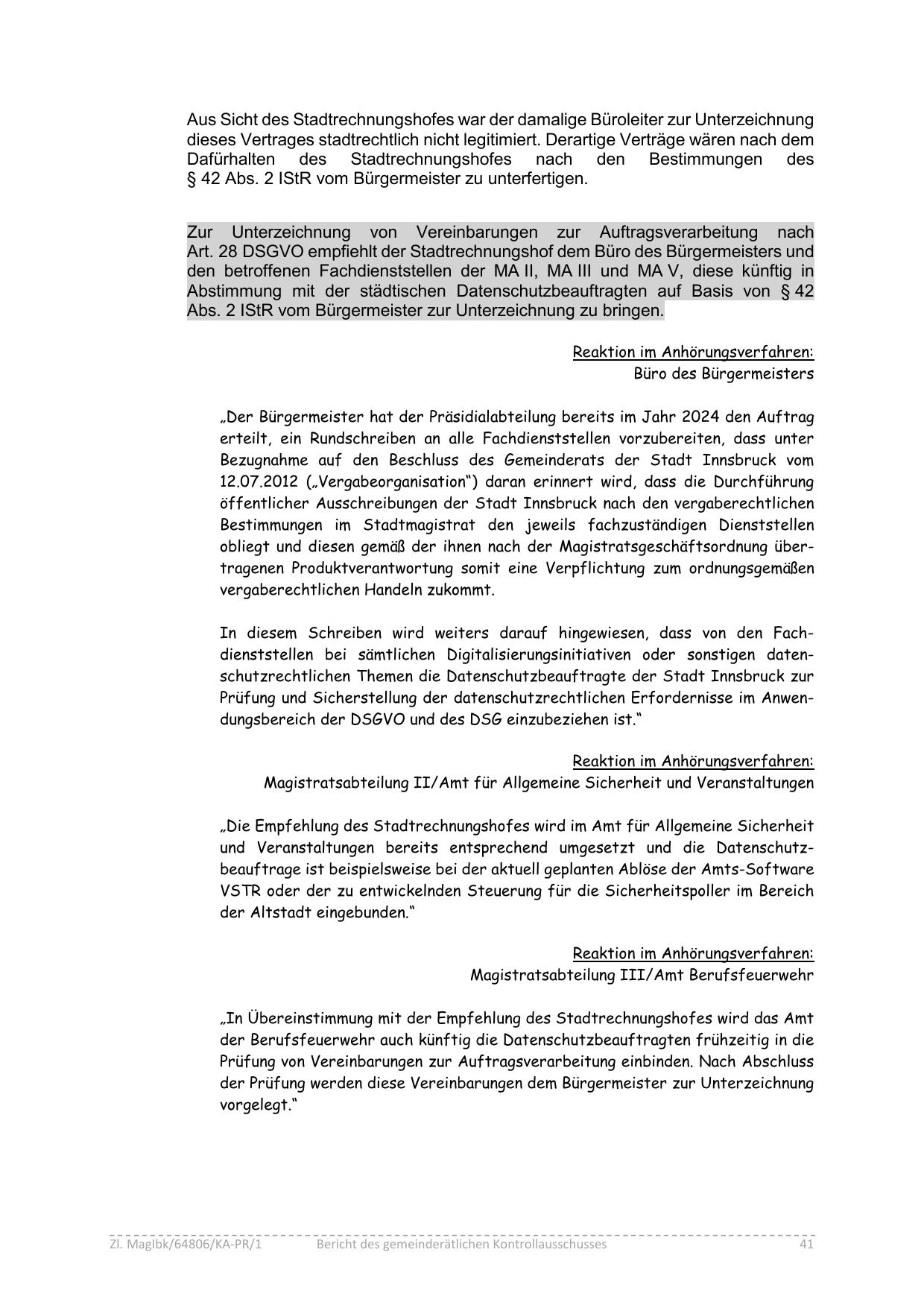Art. 28 DSGVO empfiehlt der Stadtrechnungshof dem Büro des Bürgermeisters und