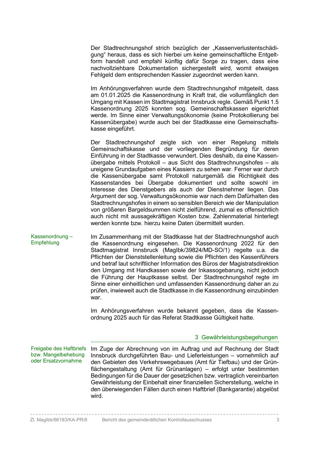 Im Anhörungsverfahren wurde bekannt gegeben, dass die Kassenordnung 2025 auch für das Referat Stadtkasse Gültigkeit hatte.