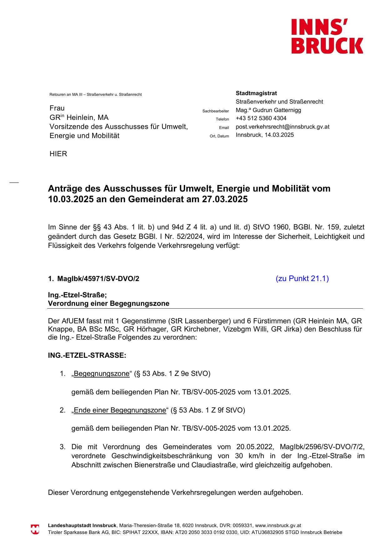 Retouren an MA III – Straßenverkehr u. Straßenrecht