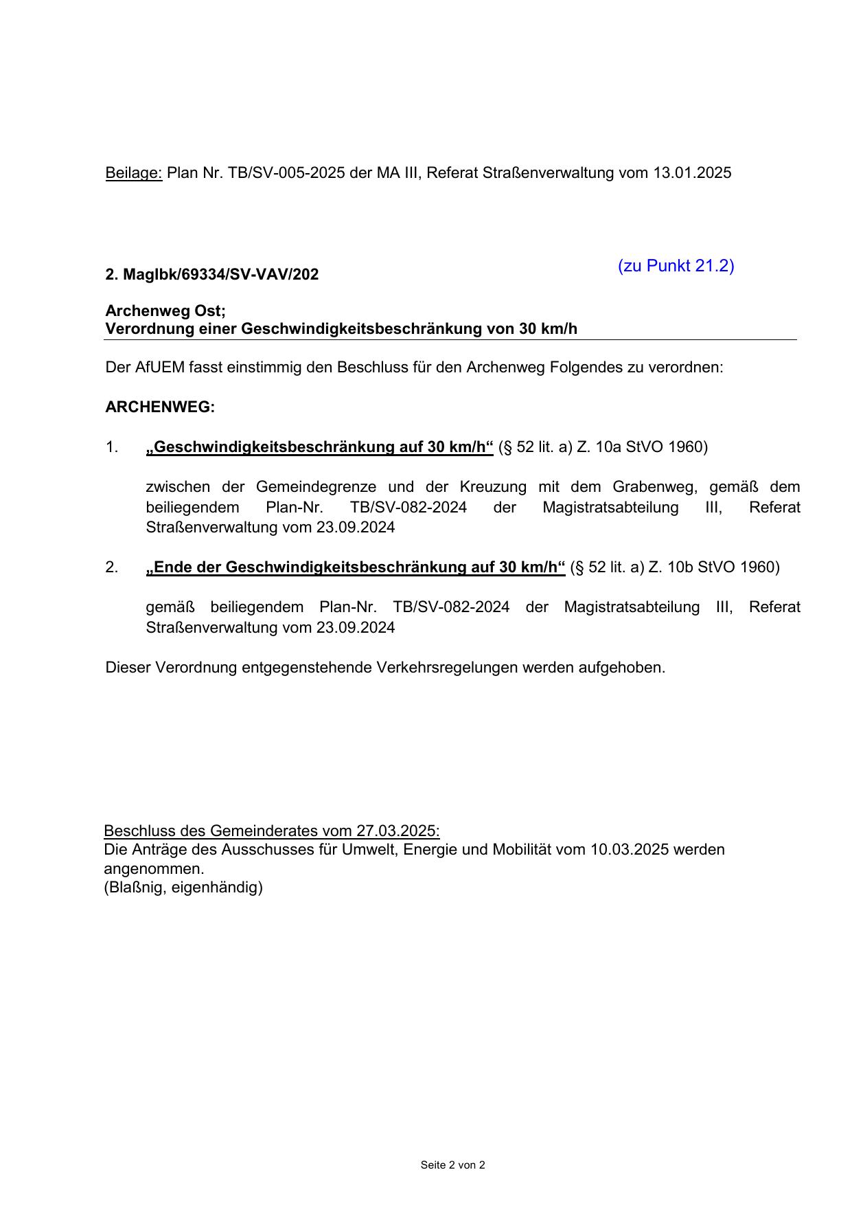 gemäß beiliegendem Plan-Nr. TB/SV-082-2024 der Magistratsabteilung III, Referat