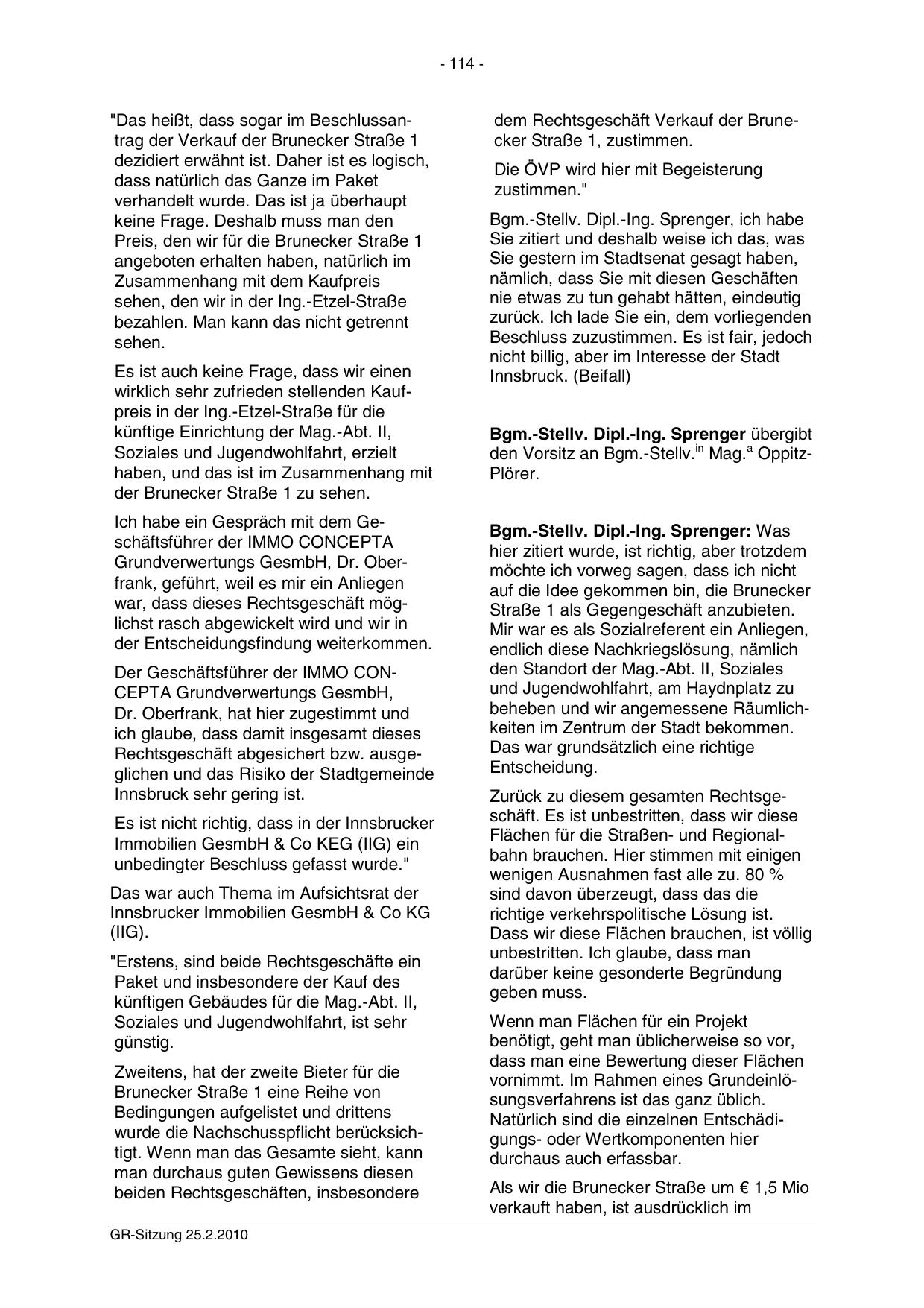 Grundverwertungs GesmbH, Dr. Oberfrank, geführt, weil es mir ein Anliegen