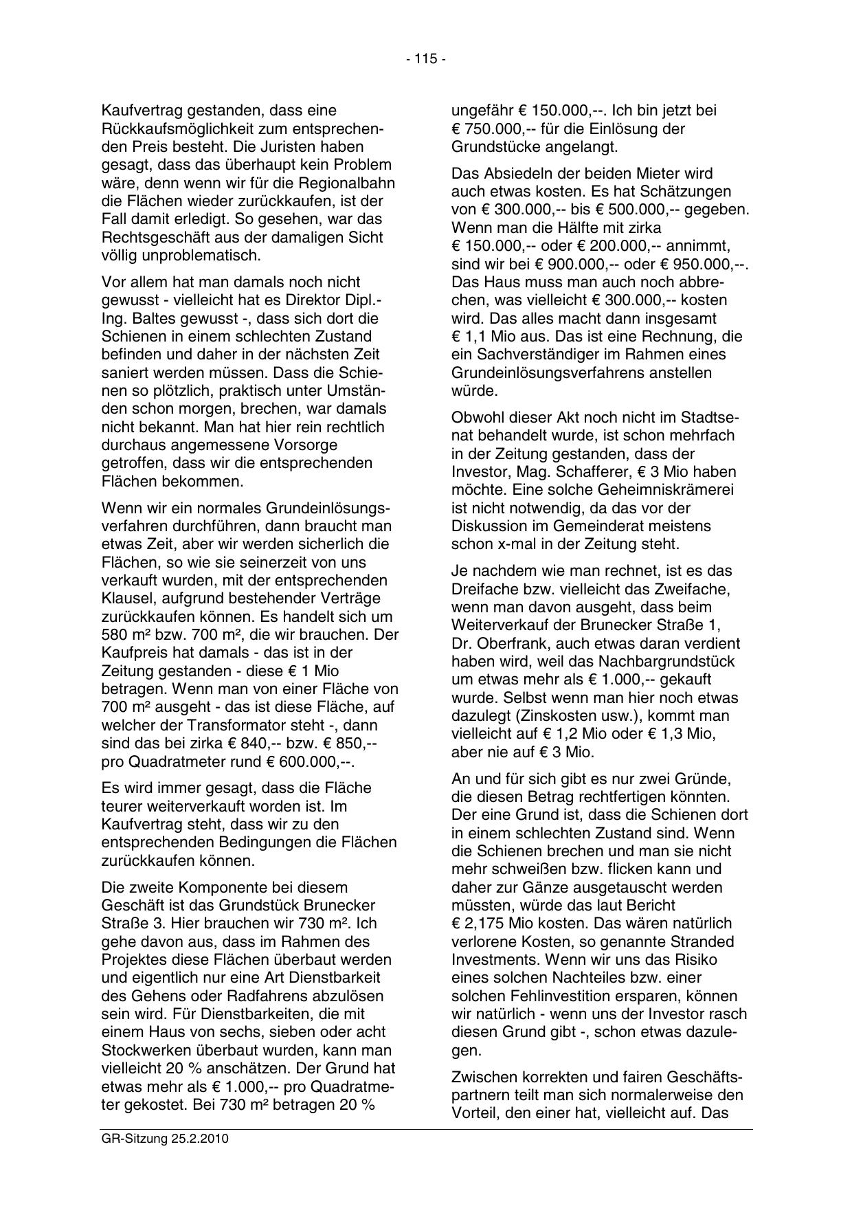 Obwohl dieser Akt noch nicht im Stadtsenat behandelt wurde, ist schon mehrfach