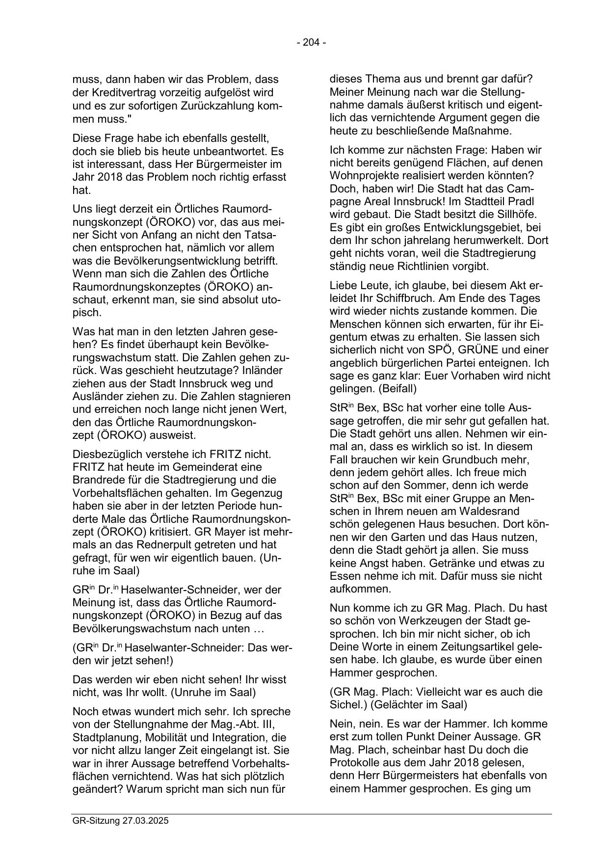 haben sie aber in der letzten Periode hunderte Male das Örtliche Raumordnungskonzept (ÖROKO) kritisiert. GR Mayer ist mehrmals an das Rednerpult getreten und hat