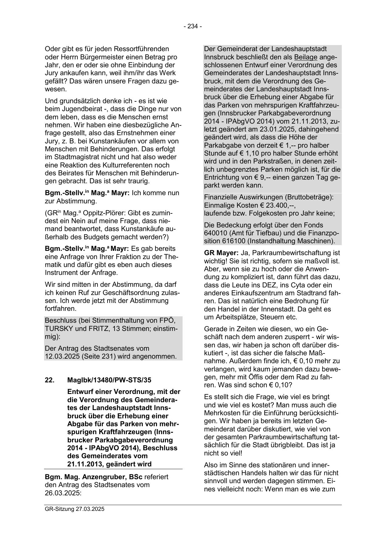 GR Mayer: Ja, Parkraumbewirtschaftung ist