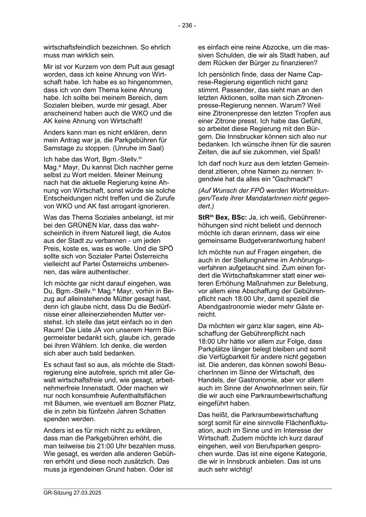 (Auf Wunsch der FPÖ werden Wortmeldungen/Texte ihrer MandatarInnen nicht gegendert.)