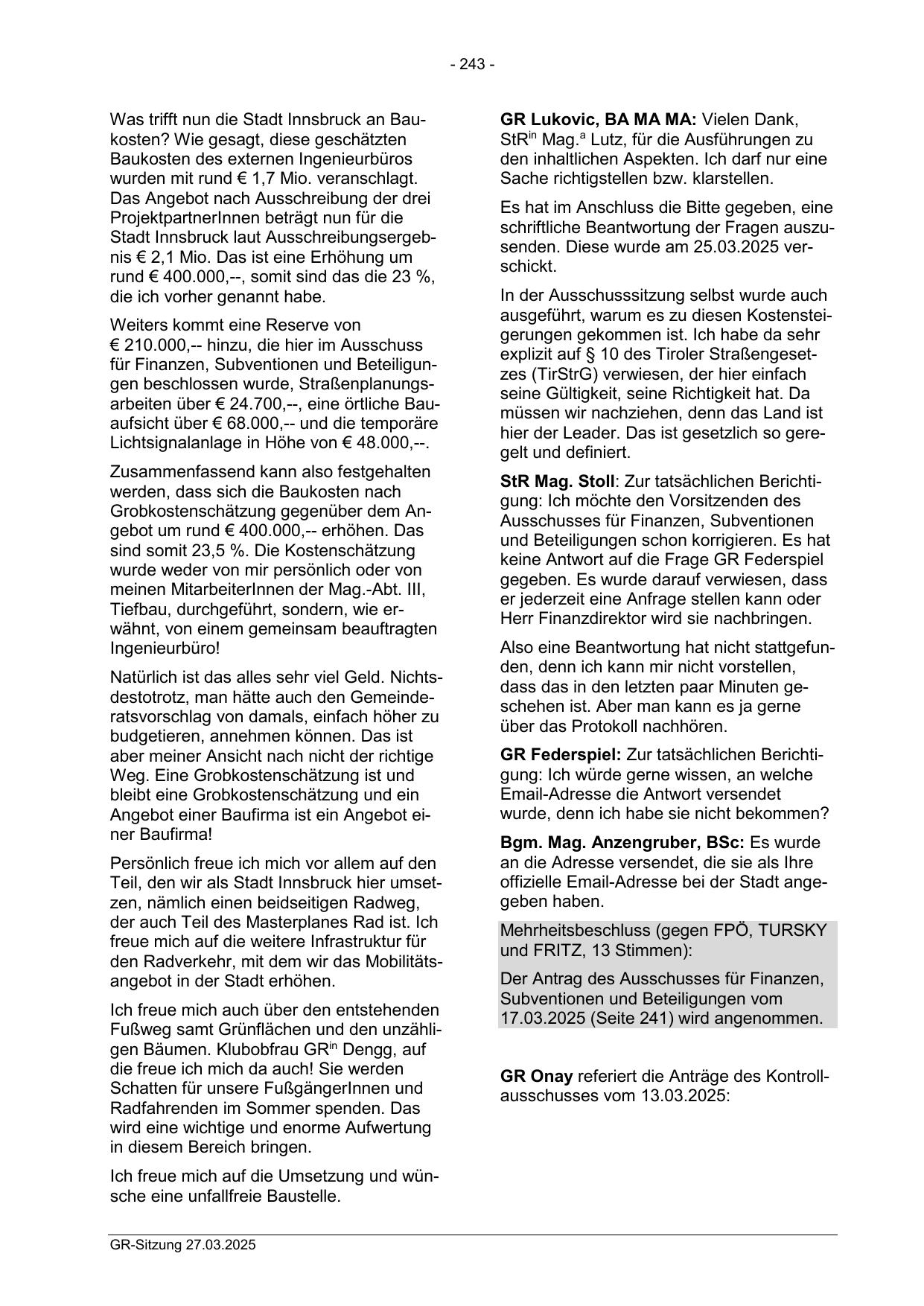 17.03.2025 (Seite 241) wird angenommen.