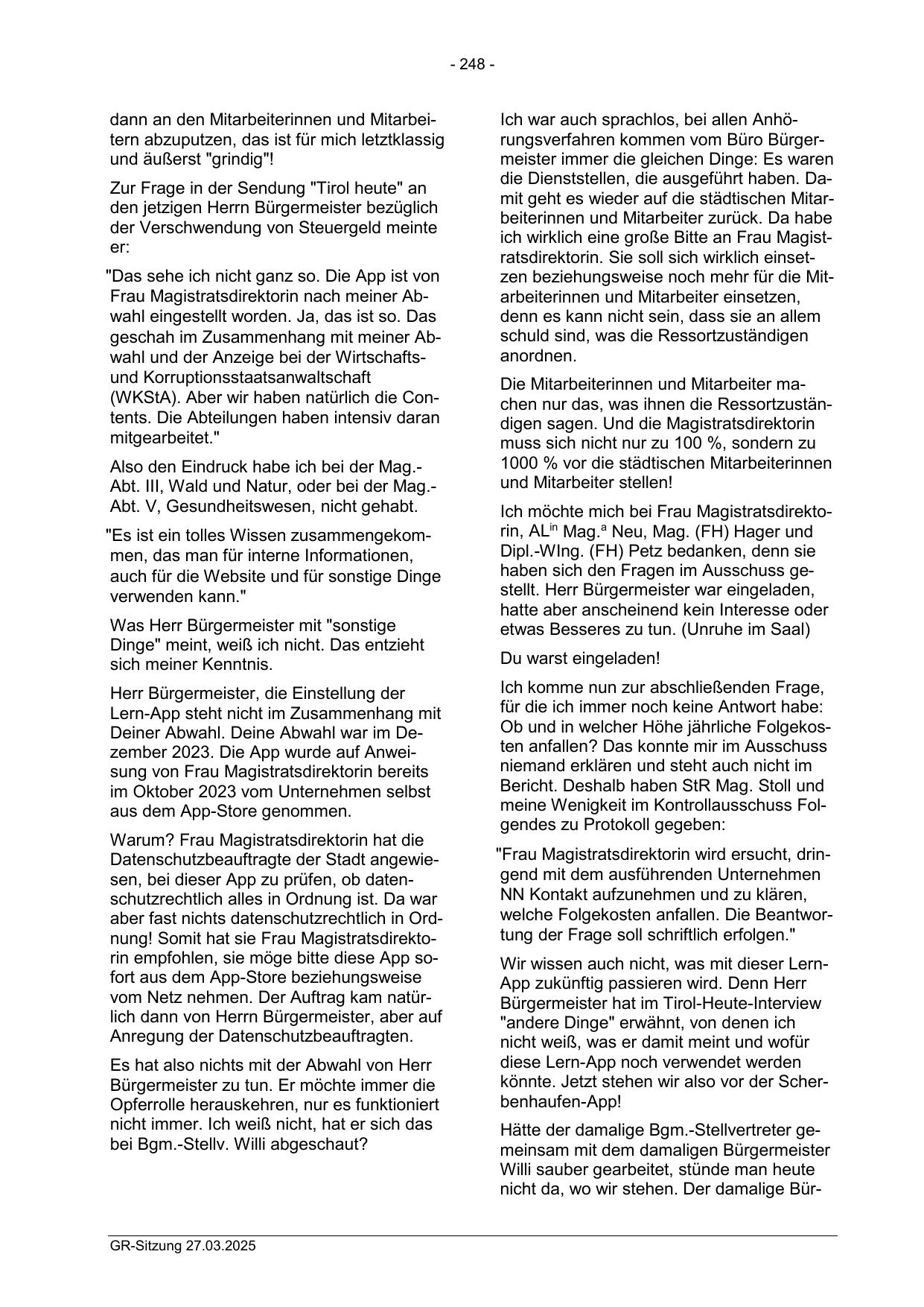 Deiner Abwahl. Deine Abwahl war im Dezember 2023. Die App wurde auf Anweisung von Frau Magistratsdirektorin bereits