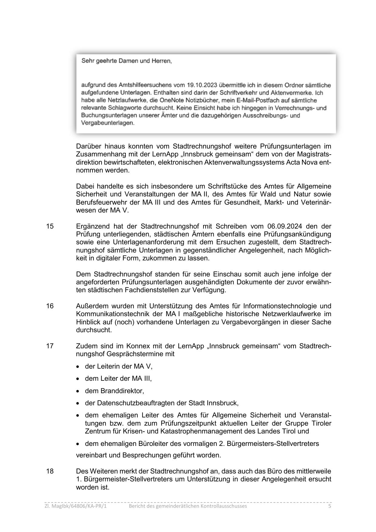 Zudem sind im Konnex mit der LernApp „Innsbruck gemeinsam“ vom Stadtrechnungshof Gesprächstermine mit