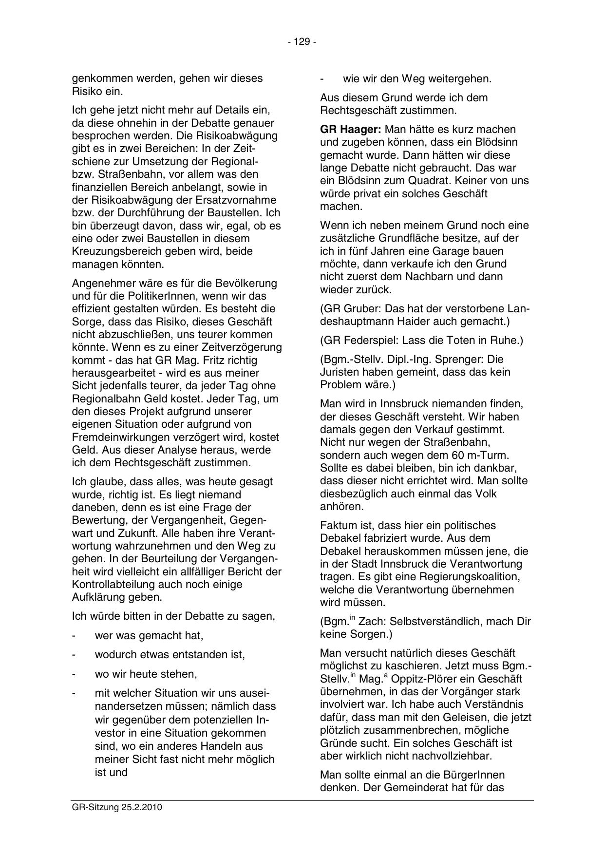 möglichst zu kaschieren. Jetzt muss Bgm.Stellv.in Mag.a Oppitz-Plörer ein Geschäft