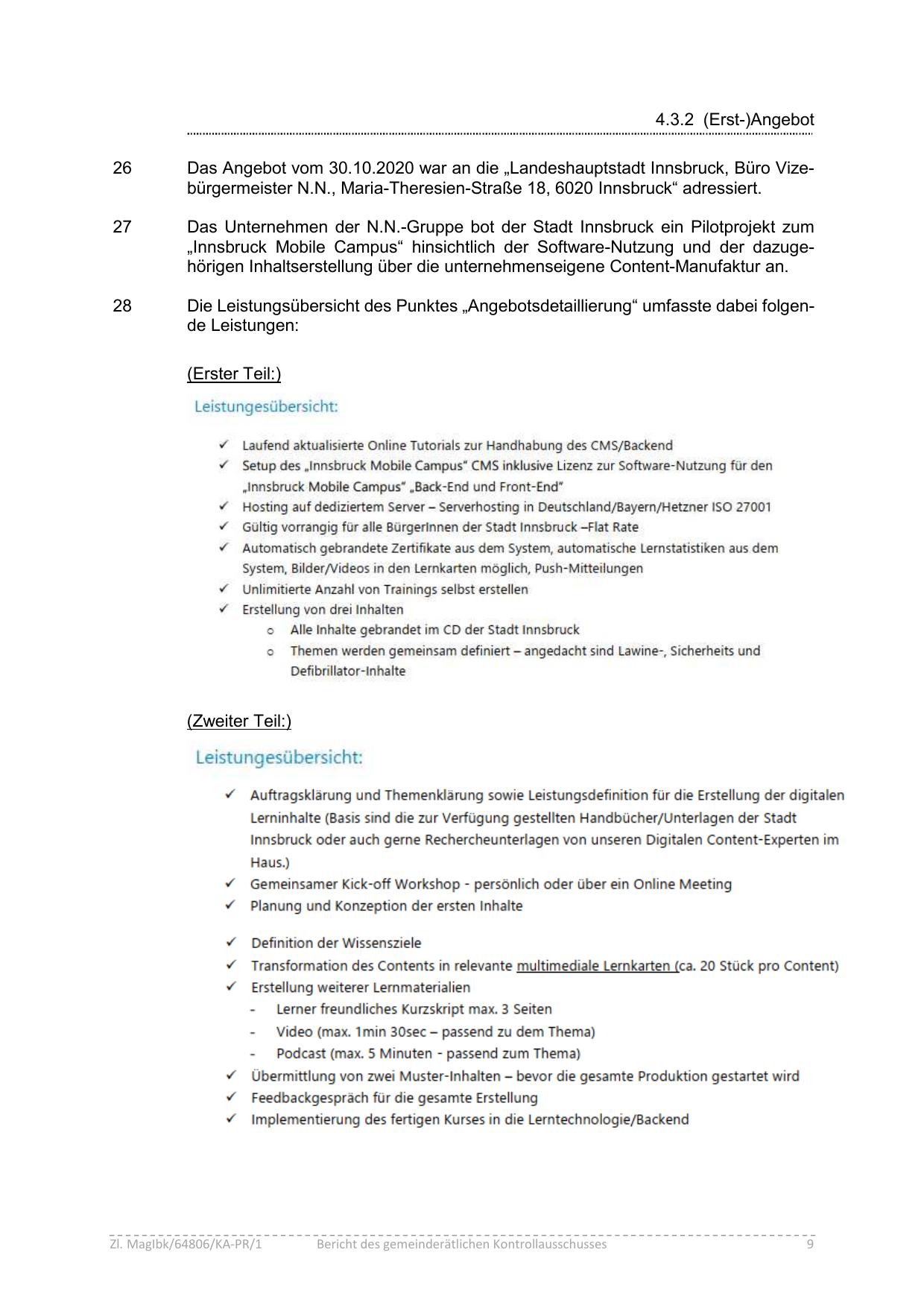 Das Angebot vom 30.10.2020 war an die „Landeshauptstadt Innsbruck, Büro Vizebürgermeister N.N., Maria-Theresien-Straße 18, 6020 Innsbruck“ adressiert.