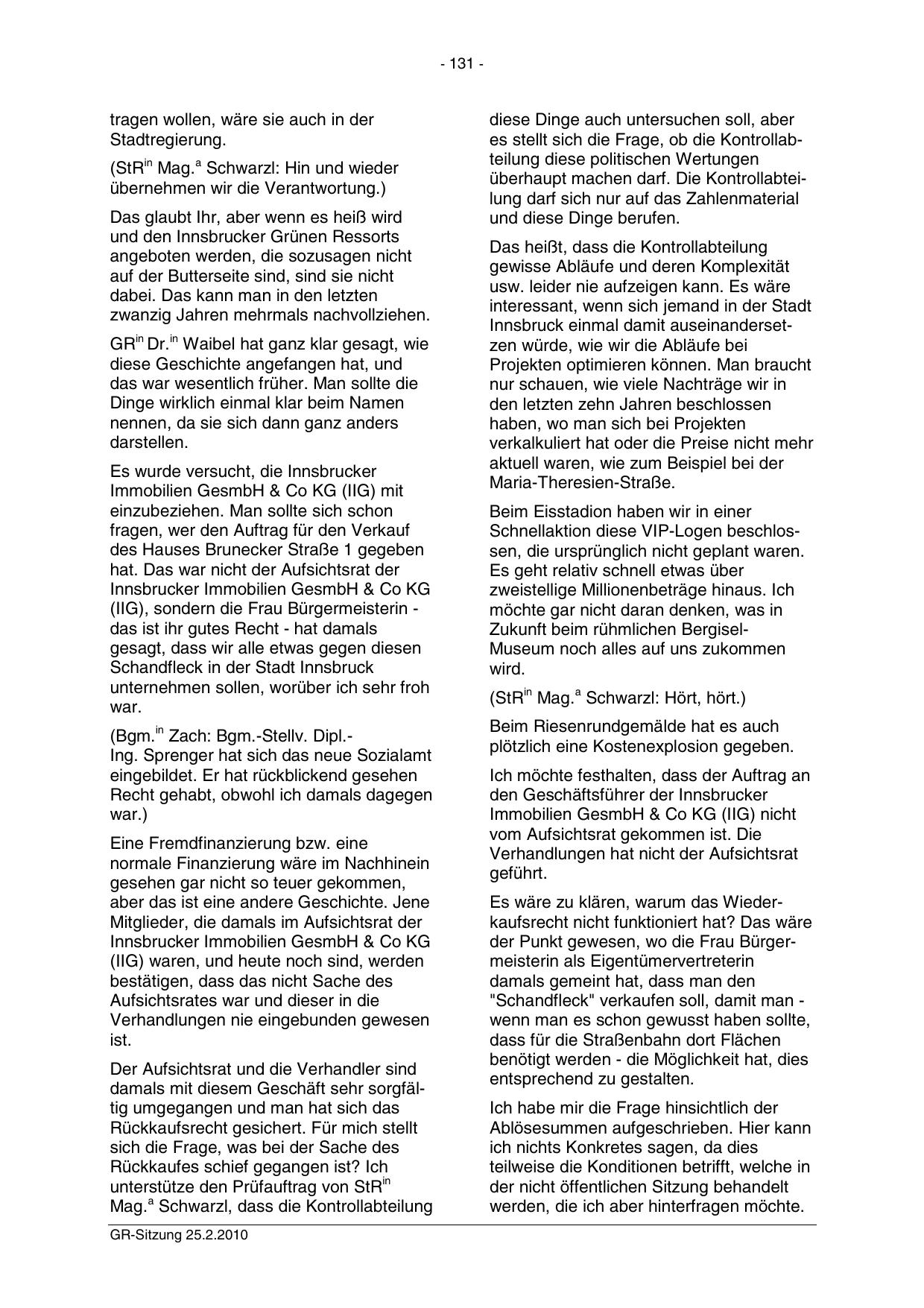 (IIG), sondern die Frau Bürgermeisterin das ist ihr gutes Recht - hat damals