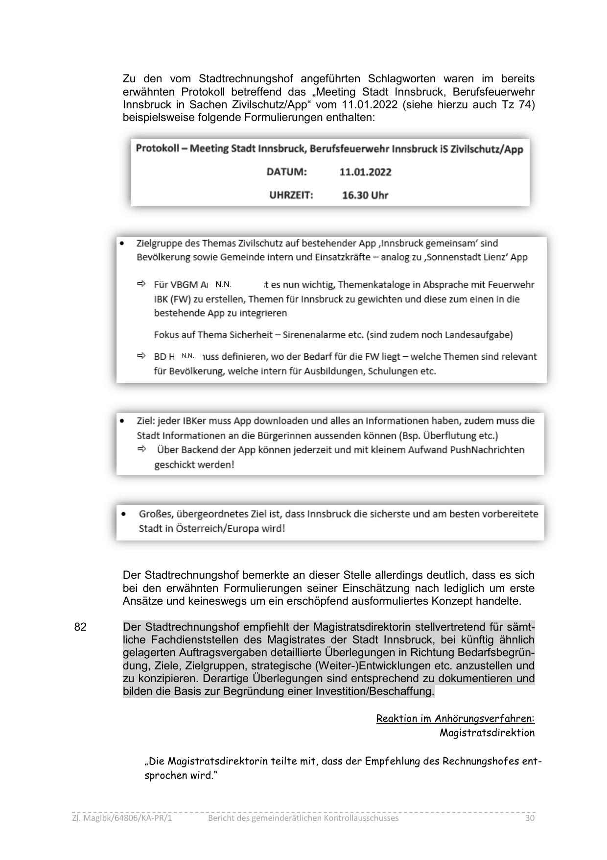 Innsbruck in Sachen Zivilschutz/App“ vom 11.01.2022 (siehe hierzu auch Tz 74)