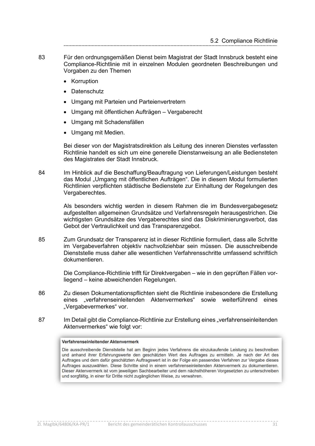 Die Compliance-Richtlinie trifft für Direktvergaben – wie in den geprüften Fällen vorliegend – keine abweichenden Regelungen.