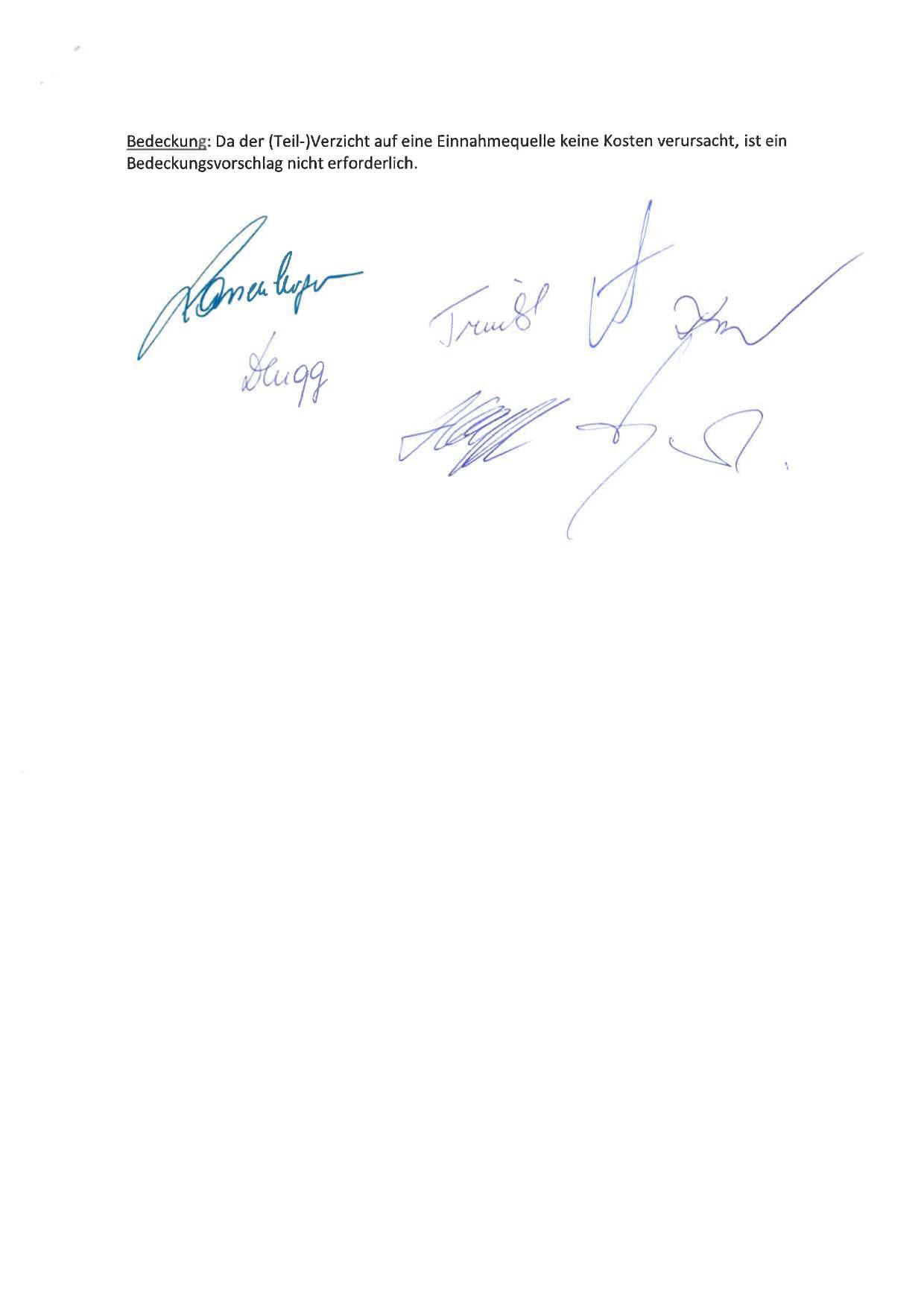 Bedeckung: Da der (Teil-)Verzicht auf eine Einnahmequelle keine Kosten verursacht, ist ein