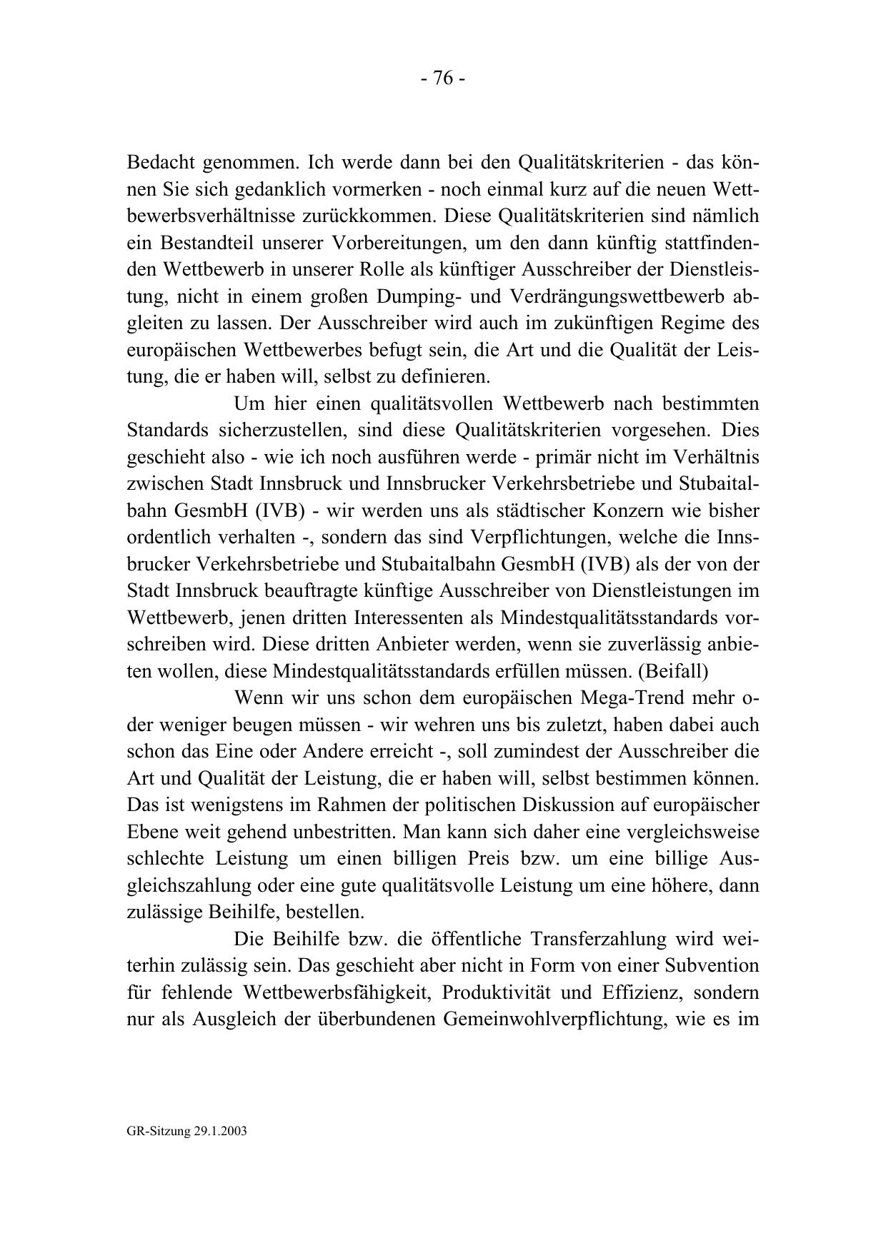 zwischen Stadt Innsbruck und Innsbrucker Verkehrsbetriebe und Stubaitalbahn GesmbH (IVB) - wir werden uns als städtischer Konzern wie bisher