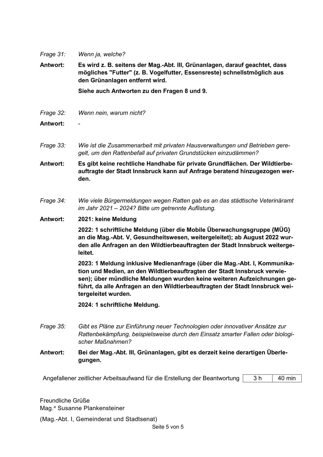 an die Mag.-Abt. V, Gesundheitswesen, weitergeleitet); ab August 2022 wurden alle Anfragen an den Wildtierbeauftragten der Stadt Innsbruck weitergeleitet.