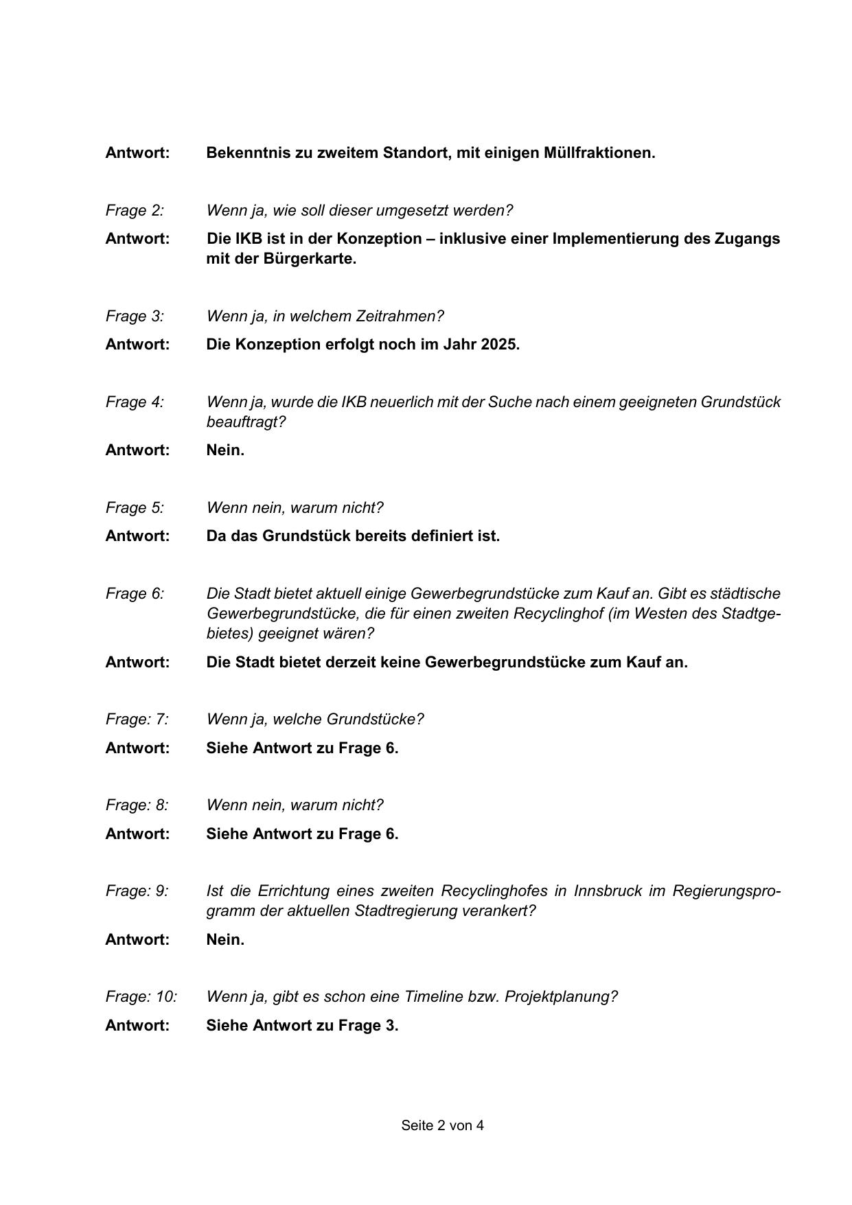 Ist die Errichtung eines zweiten Recyclinghofes in Innsbruck im Regierungsprogramm der aktuellen Stadtregierung verankert?