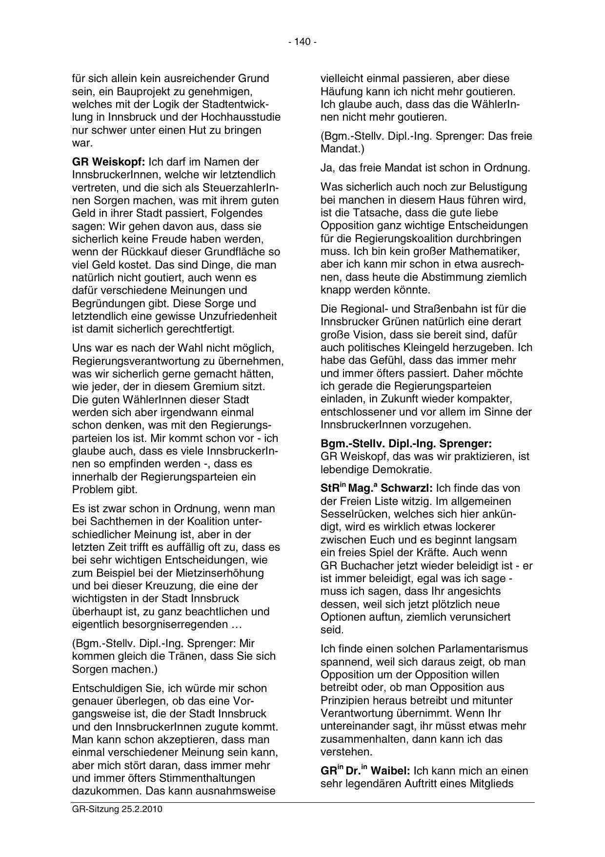 glaube auch, dass es viele InnsbruckerInnen so empfinden werden -, dass es