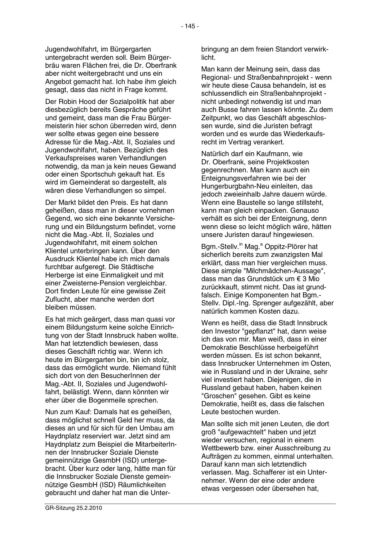Mag.-Abt. II, Soziales und Jugendwohlfahrt, belästigt. Wenn, dann könnten wir